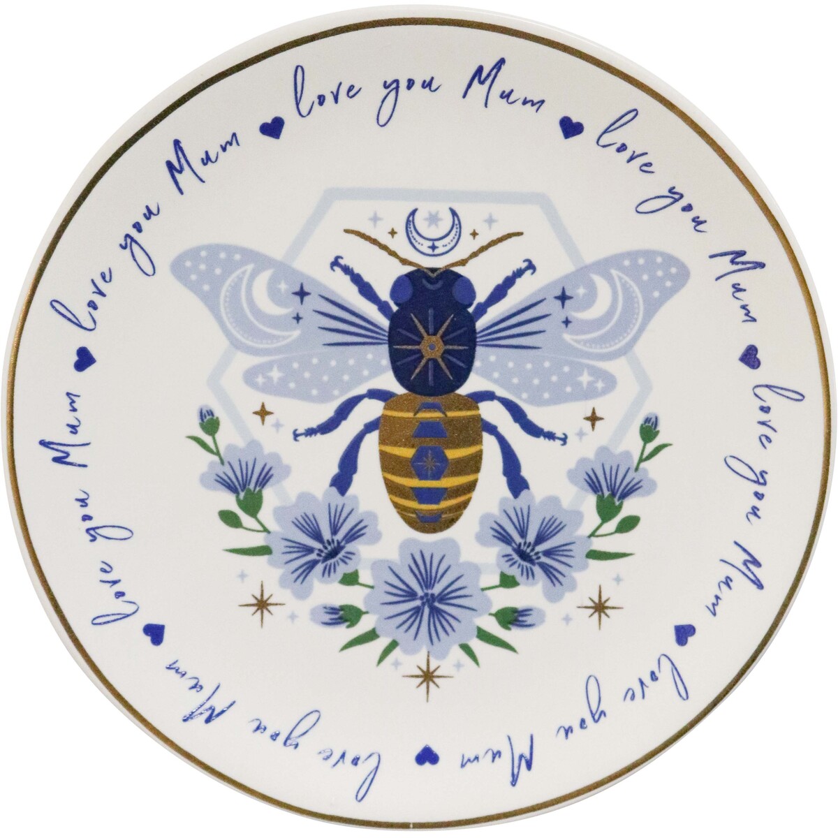 We really love this one, and our retail partners seem to agree - this Gift Dish Mum Honey Bee is a stunner. Handcrafted from ceramic, it’s the kind of piece that almost feels too good to use for loose change or jewellery. The detailed honey bee, the starry blue floral design, and the subtle gold trim around the edge make it both playful and sophisticated. And that “love you Mum” message circling the rim? Spot on for any gifting occasion. The hand painted style means there are slight imperfections and variations. But we reckon that’s what makes each one so unique. We’ve found it’s perfect as a display dish in the entryway or used as a decorative catchall in bedrooms and offices. Because it’s 10x10x2cm, it doesn’t take up much space but still stands out. The cool blue shades complement a variety of décor styles, too - from rustic to modern farmhouse or even boho.