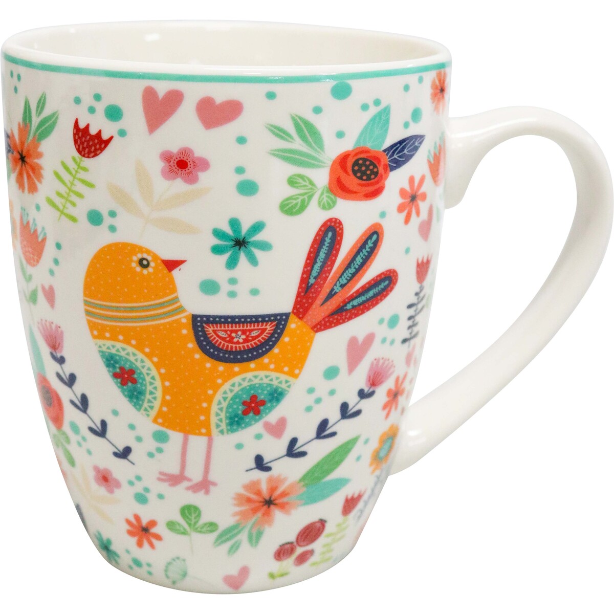 Brighten any customer’s morning with our Gift Mug Floral. It’s a vibrant new addition for homewares and gift retailers - this mug stands out for its playful, artful print and timeless shape. Featuring a joyful orange bird, surrounded by floral and heart accents, it radiates good cheer and a bit of folk-art whimsy. That means it’ll work in country style, retro, or even Scandinavian inspired displays. The piece is sized at 8.5x5.5x10cm and made from high quality new bone china, so it feels substantial in hand without being heavy. The overall vibe is charming and can easily mix with more pared-back ceramics on shelf. We like how the soft pinks, reds, teal blues, and orange add a pop to plain spaces - we find these mugs work well as impulse gifts or as upsells with home office accessories. Just a quick note - as delicate as it looks - this item isn’t suited for dishwasher or microwave use (it’s not worth risking the print). It’ll hold up best with hand washing in warm soapy water - just let customers know to treat it kindly!