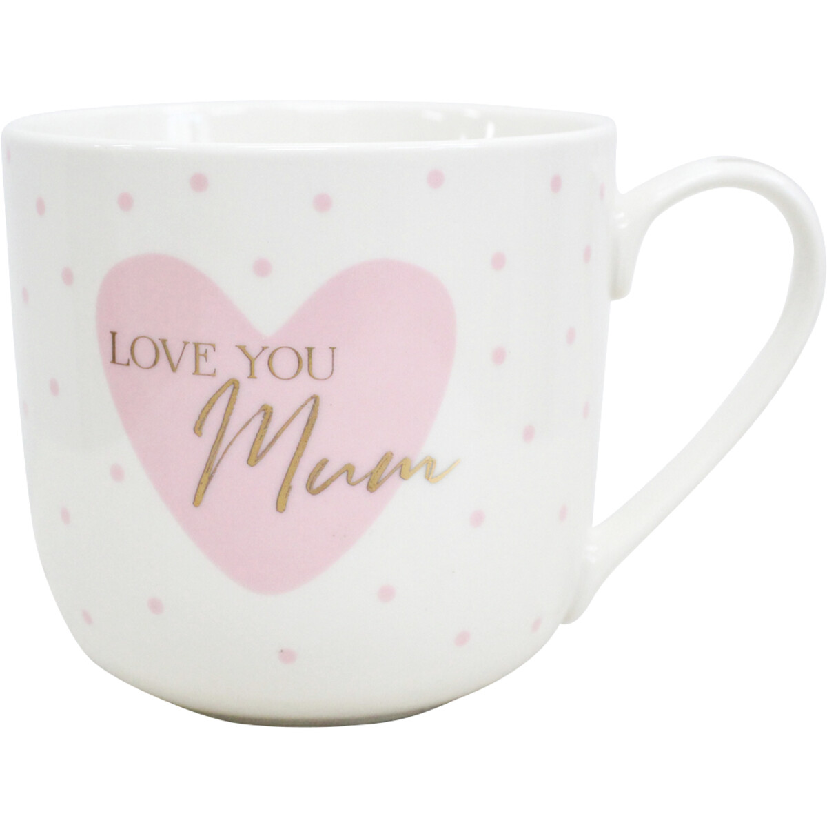 Here's a stylish bone china mug that's straight from the heart and bound to find its way into many a gift bag. Our Gift Mug Love Mum - it’s one of those all-time favourites that works for birthdays, Mother’s Day, or just a little something to show Mum she’s the best. Classic creamy white base, a scattering of pink dots, and a big pink heart on the front - printed with gold foil that says ‘Love You Mum’. It just hits all the right notes for an easy yet thoughtful gift.