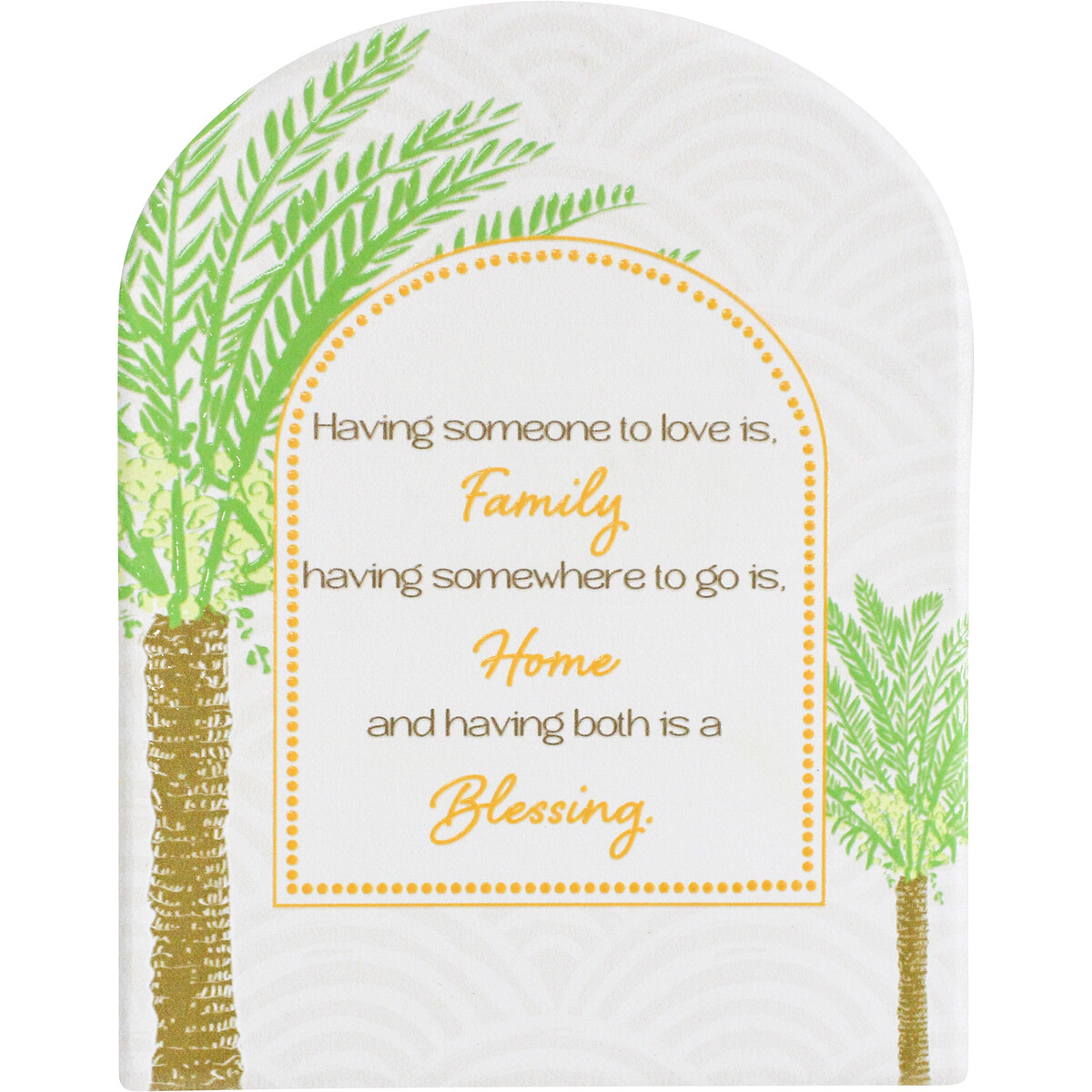 We really love this particular gift plaque. It’s got a sense of charm that’s pretty hard to come by, and we think customers will gravitate toward that. Our Gift Plaque Family, made from ceramic with a striking palm tree design, is gentle enough for any room but still makes a solid statement at just 11 x 14 x 1 cm. We feel its unique arch shape and calming colour palette helps it work with a variety of home aesthetics - beachy or boho, modern coastal, even those who just want something heartwarming.