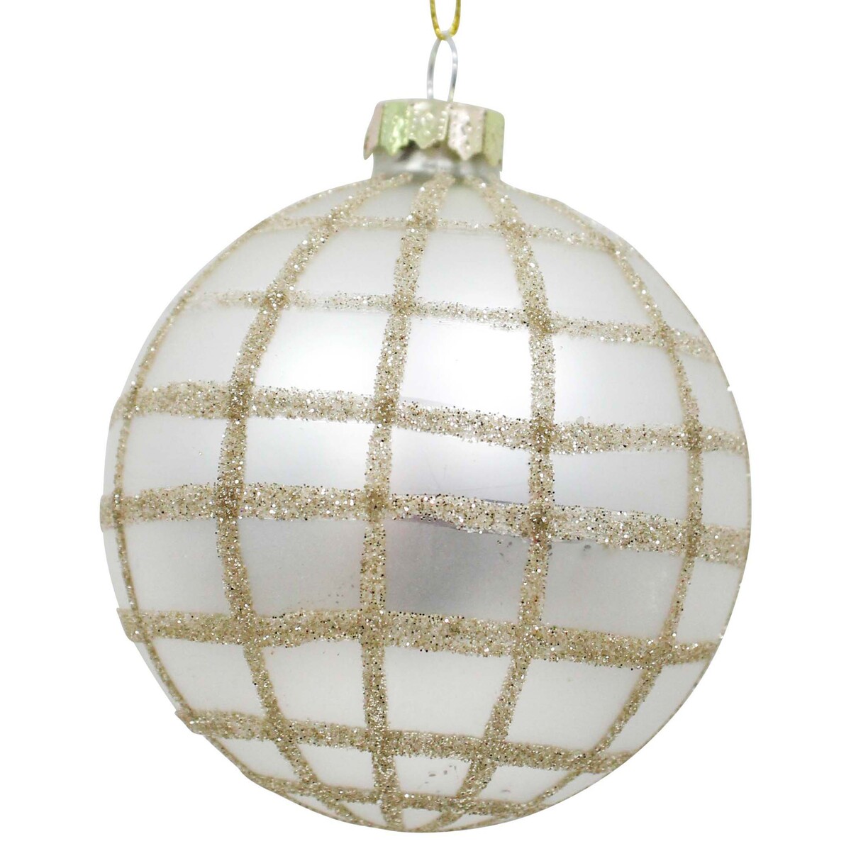 We absolutely love finding new twists on the classics, and our Glass Bauble Tartan ornament is a great example. Classic Christmas baubles get an elegant update with a frost-white base and metallic gold-glitter tartan patterning - a striking look that feels right at home alongside traditional reds, pinks, blues or greens. And it’s different enough that customers will want to mix and match a few on their Christmas trees or put them front and centre as part of a wintery table display for the season. We have noticed these work particularly well with both metallic and pastel decorations, which makes them surprisingly versatile across multiple home decor styles - we do think they’d look just as good in sleek modern homes as they would at the centre of a more maximalist holiday theme. Each one is hand-finished, so there are some variations - but this adds to their charm rather than detracts. The bauble measures 8cm and is made from glass, which helps give it that beautiful frosted look.