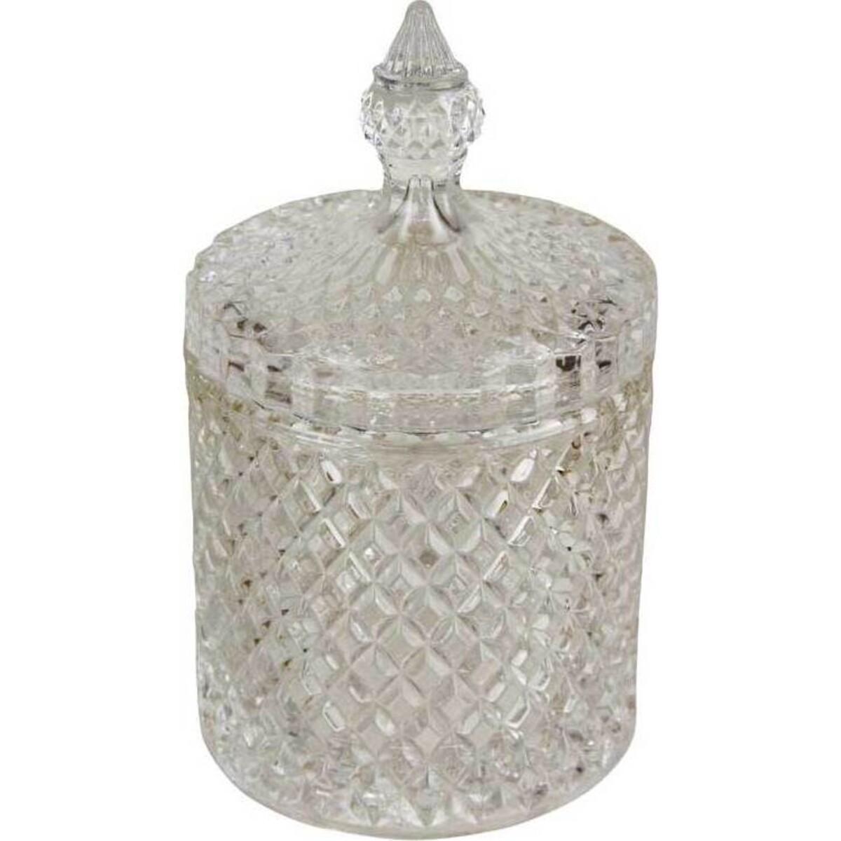 It’s funny how a glass trinket jar like this ends up being the centrepiece of a console or a bedroom shelf. We’re really pleased to offer our Cruze Med - it’s something that deserves a good look from anyone who enjoys mixed glass textures and that vintage, timeless look. It’s 8x8x14 cm, so perfectly sized for smaller bits and bobs, rings or earrings, or keeping hair ties from scattering everywhere. And it’s just as handy in the office - there aren’t too many places in your home you couldn’t pop one of these. It never fails to remind us of antique European glassware with that diamond cut detailing - which always looks clean and bright under any kind of light. The clear finish means it won’t overpower shelves with other coloured jars or vases either. We still haven’t decided if we prefer using them for practical things, or just as a bit of decor with artificial flowers peeking out the top!