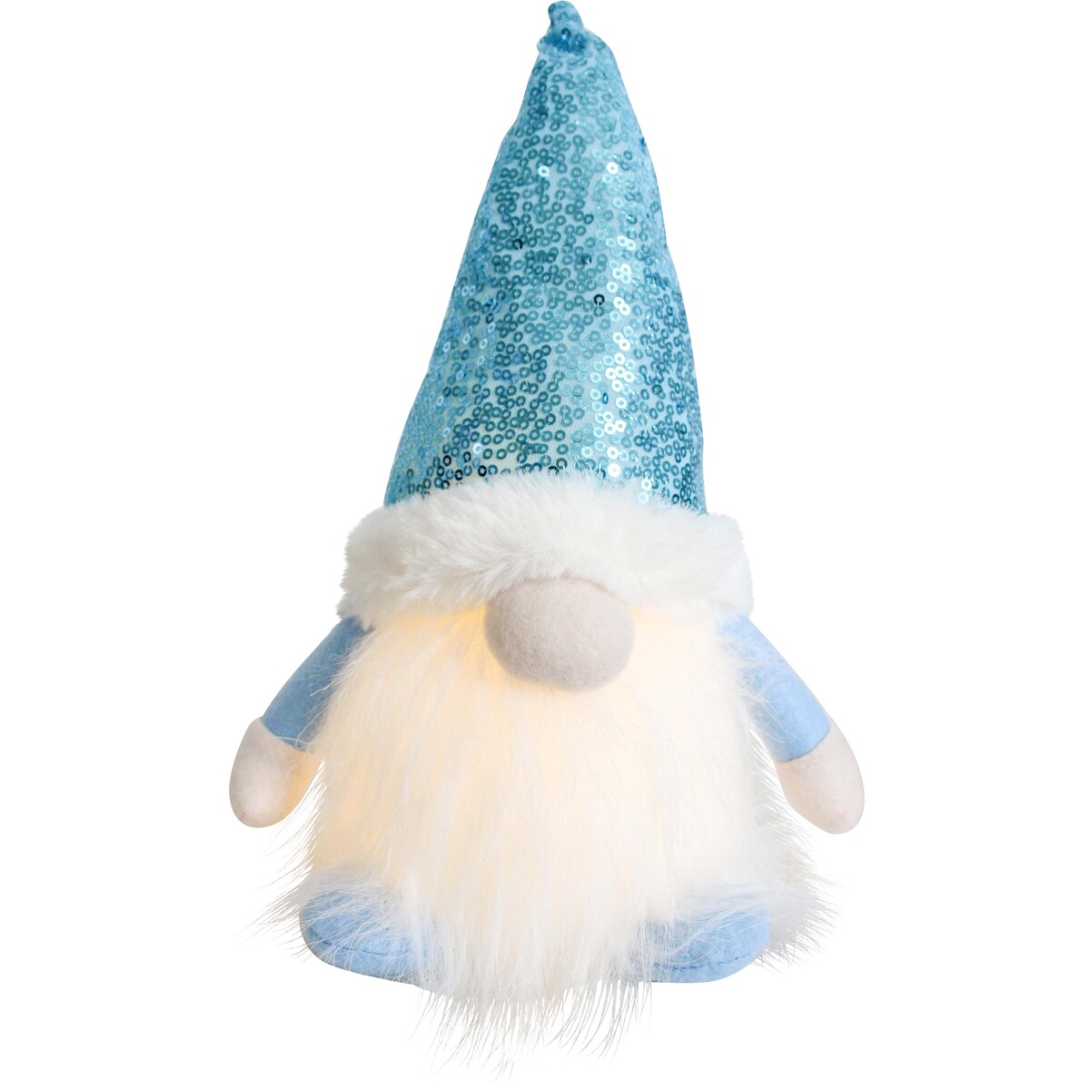 We can't get enough of this Gnome LED Sky - it's a proper showstopper with its sparkly blue sequin hat and bushy white beard. With a 30cm tall frame, it fits anywhere - shelf, side table, or the centre of a display. We love how the polyester and plastic build means it's lightweight, and when you switch on the LED, it lights up the whole mood.