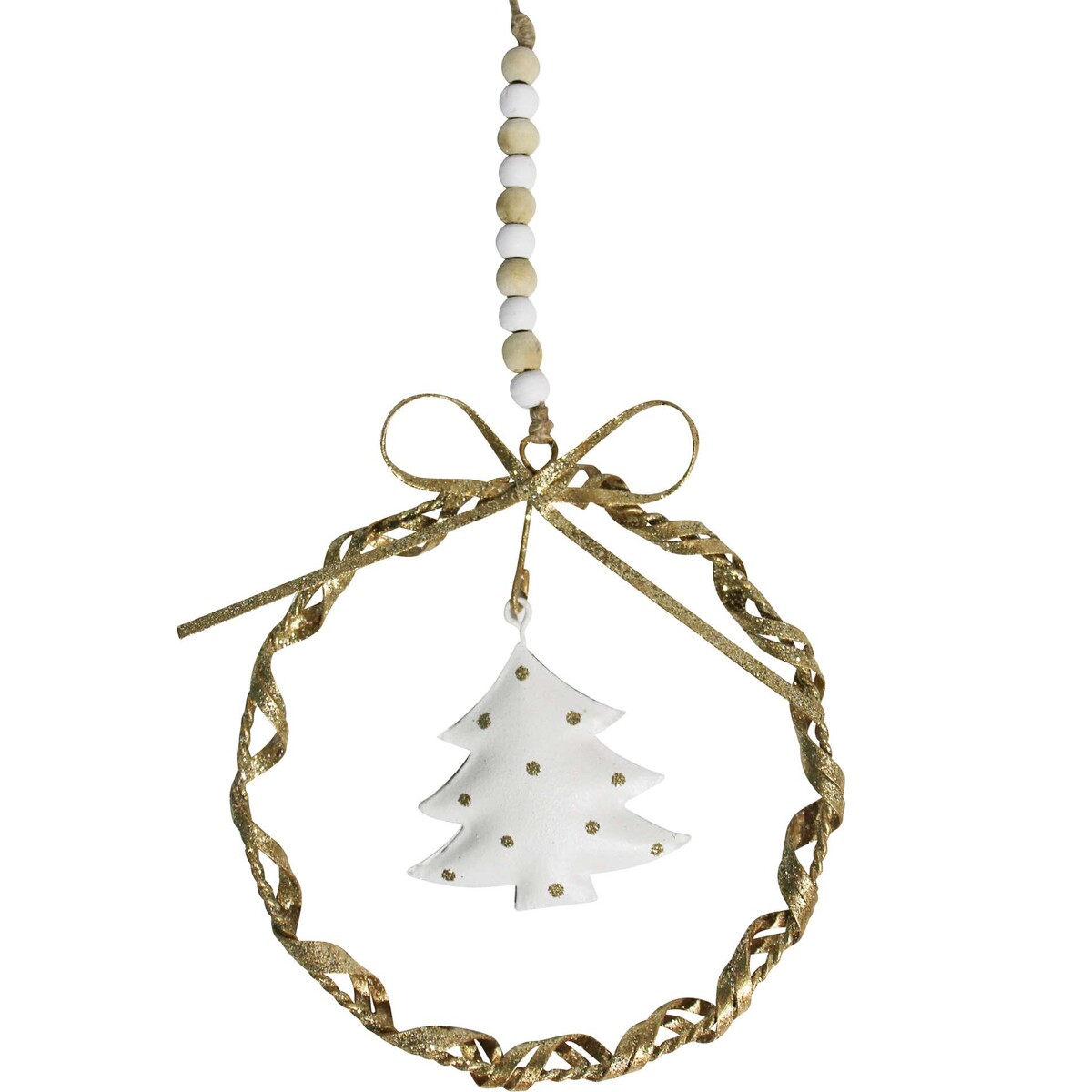 We can't get enough of the Gold Twist Wreath Tree, Small - it's a charming piece that just catches your eye. Perfect for those looking to add a subtle yet festive touch to their product lineup, this little beauty is all about understated elegance. Shaped in a classic Christmas tree silhouette, the metal frame wrapped with delicate gold twist and beads has a lovely handmade quality. It measures 13x11.5x1cm, so it's not too large or overwhelming, but it definitely has presence.