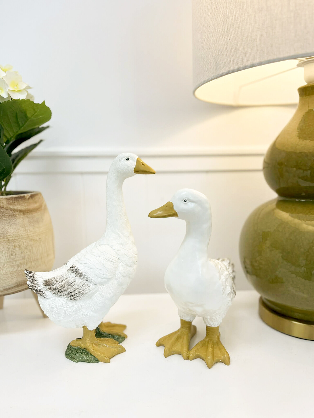 A strong country vibe. Classic English cottage influences. Something that exudes this bit of playfulness that you don’t see every day in a retail shop - we’re not talking about the chic stags and hares but a cute goose figurine, white resin, light brown feathers as accents, and an attitude that is unmistakable to anyone who’s spent more than five minutes on a farm. What makes our Gladys the Goose extra special is that refined matte finish on her feathers - the print is so realistic it almost looks like she’s going to move her neck. But with dimensions of 28.5x13x31cm, she’s just about the right size for a garden or tabletop accent piece, but if you look at other barnyard-style accents and if they’re doing well in your display window, then you’ll know what we mean about how pieces like this bring a much needed fun feeling to any room.