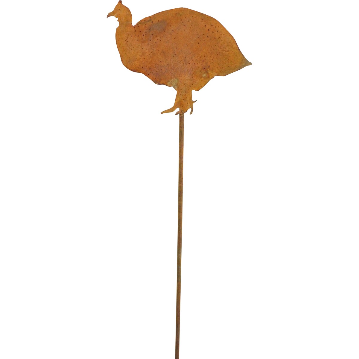 This has a genuinely rustic hand-finished look, with a burnished patina on metal that varies nicely with each stake. While some will want them indoors - especially guinea fowl fans - these really come alive outdoors. The finish changes and deepens as it weathers, so they develop even more character over time.