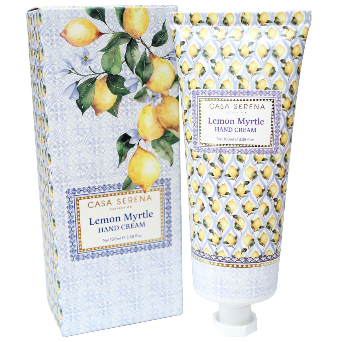 Indulge in the luxurious Handcream Lemon Myrtle by Casa Serena, now available in a chic 100ml tube, perfectly capturing the essence of sophisticated elegance. Designed to be an exquisite addition to any homewares and giftware inventory, this hand cream not only nourishes but also complements various decor styles with its delightful packaging. Enveloped in a pattern reminiscent of classic Mediterranean tiles adorned with vibrant lemon illustrations, it adds a touch of vintage charm to any space - be it a home or office. Formulated with a blend of nourishing ingredients, including Tocopherol Acetate (Vitamin E), Glycerin, and Citronellol, this hand cream ensures your skin feels soft, hydrated, and refreshed. The subtle fragrance of Lemon Myrtle invigorates the senses, making it a favoured choice among customers seeking both functionality and aesthetic appeal in their skincare products. The blend of natural and synthetic materials - Water (Aqua), Cetearyl Alcohol, Phenoxyethanol, and essential oils - ensures a non-greasy, quick-absorbing formula that leaves hands feeling silky smooth. The 100ml tube offers ample product, making it an ideal gift or a daily indulgence. As a retailer, presenting this hand cream in your store can attract a discerning clientele who appreciate the finer things in life. Its stylish design enhances visual appeal, effortlessly fitting into any decorative setting. Whether placed in a bathroom, atop a dressing table or used as a feature item on a gift shelf, the Handcream Lemon Myrtle by Casa Serena promises to be a popular choice, combining the allure of premium skincare with decorative sophistication.