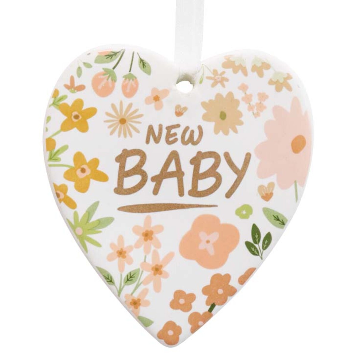 We’ve seen a real demand for baby shower and new parent gifts. And our Hang Heart New Baby has become a go-to pick with gift shops and florists - especially if you’ve got customers who like to put something extra on a bouquet. We get it - parents receive heaps of new baby cards, and it’s nice to pop something special on the wall, fridge, or even a baby book as a bit of a keepsake. We really like that this ceramic heart is pretty enough for new parents who appreciate florals but not too cutesy either. It’s sweet but also sort of elegant with its neutral tones. Easy to display because there’s no hanging hardware - just use the included ribbon hanger. It measures 8 by 9 cm plus that white ribbon, making it pretty compact and easy to fit into smaller areas or gift arrangements. There’s no age limit here - parents can use these hearts in a nursery, on a noticeboard, or wherever they like for years after their child grows up.