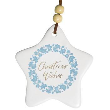 Our Hang Star Aqua Wreath is one of those Christmas tree decorations that just stands out in all the right ways. Made from ceramic and strung with leather and wooden beads, it features a subtle aqua floral wreath and the words 'Christmas Wishes' printed in gold - a classic, understated look that's both festive and elegant. It's the perfect ornament for customers who want something unique but not over-the-top, and at 8.5x9cm, it looks just right among all the other Christmas decorations.