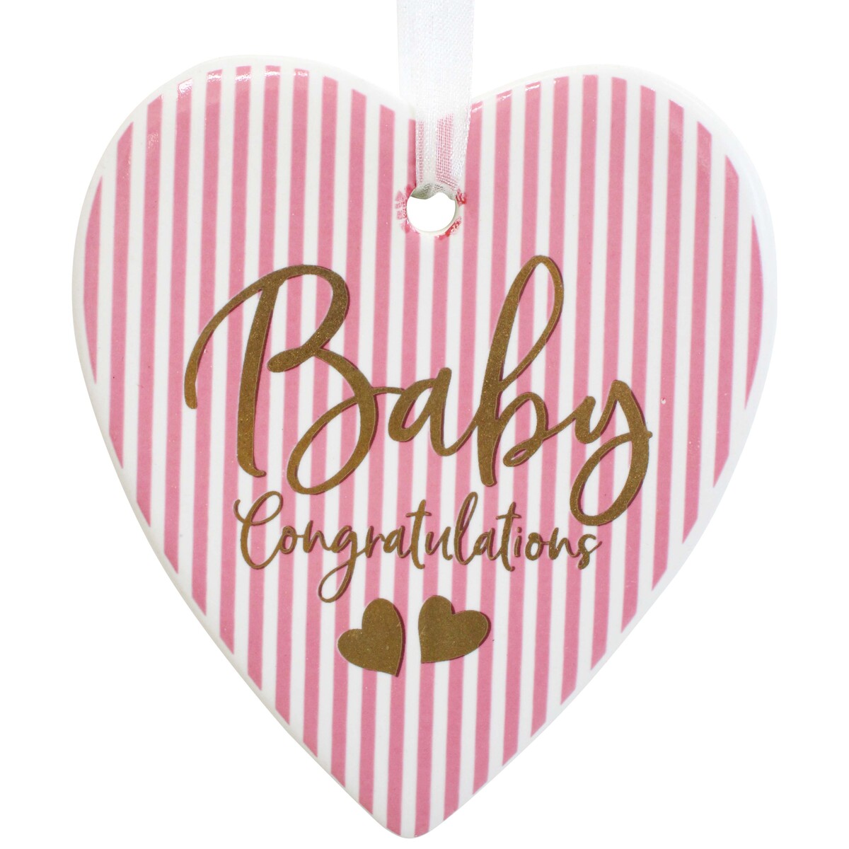 There's something timeless about celebrating a new baby, and our Hanging Heart Baby Girl fits right in with that tradition. Made from ceramic with real gold details, it measures a sweet 8x8cm (plus the hanger) so it's perfect for nurseries, christenings, or new baby gifts. The pink stripes and heart shape add an instant charm that's hard to miss - we see this piece doing well as a keepsake in any shop's gifting section.
