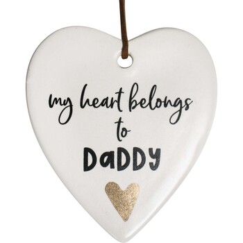 The Hanging Heart Daddy has got to be one of our most loveable designs for your Father’s Day gift edit. The message, ‘my heart belongs to daddy’, is super sweet and will appeal to parents of young children especially, as that seems to be when we hear this phrase most often. As with the rest of this collection, this one is made from smooth ceramic and features a metallic gold heart embellishment on the face, bringing extra charm to the piece. Designed to be hung from a hook on a wall or shelf, or from an ornament stand on a shelf or tabletop, these decorations are perfect for gifting all year round and feature a white base colour and black font making them easy to pair with both contemporary and traditional decor. The Hanging Heart Daddy measures 8 x 9cm + hanger and is crafted by hand. Natural imperfections will be found in the printing and ceramic.