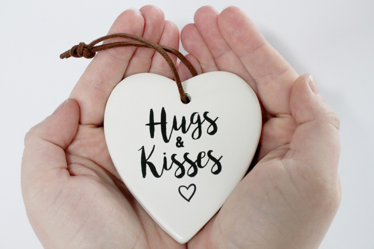 We absolutely love having a few positive affirmation decorations around the place, and we think you should too! Our Hanging Heart Hugs is such a meaningful gift to share with someone to help make their space feel more like home. It is a reminder to let go of things that no longer serve us and instead focus on the things that we are grateful for in our lives. Hugs and kisses can mean so many things. It could be something you say when you depart, or even when you greet someone. It could represent celebration, adoration, or affection - this message fits all occasions! We think it would be a beautiful keepsake for your customers to give to their loved ones to remind them every day that they are loved and appreciated! They are 8x9cm in size with an added hanger, made from ceramic, and finished with a stunning ribbon.