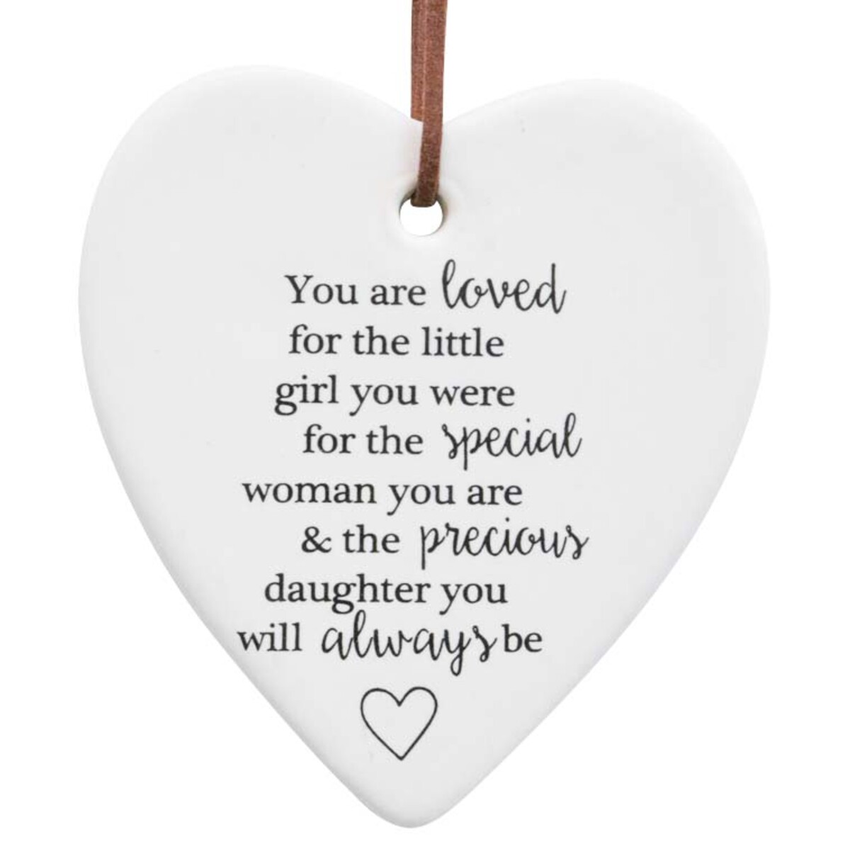 It is crafted from ceramic and painted with exquisite care. 8x9cm + hanger is the perfect size for any space, and they are designed in beautiful, natural tones that make them suitable for any home or office. They are hand-made and finished with attention to detail—imperfections in the ceramic and printing are part of what makes each item unique! This means that no two pieces will ever be exactly alike, making each one a special reminder of your relationship with your daughter.