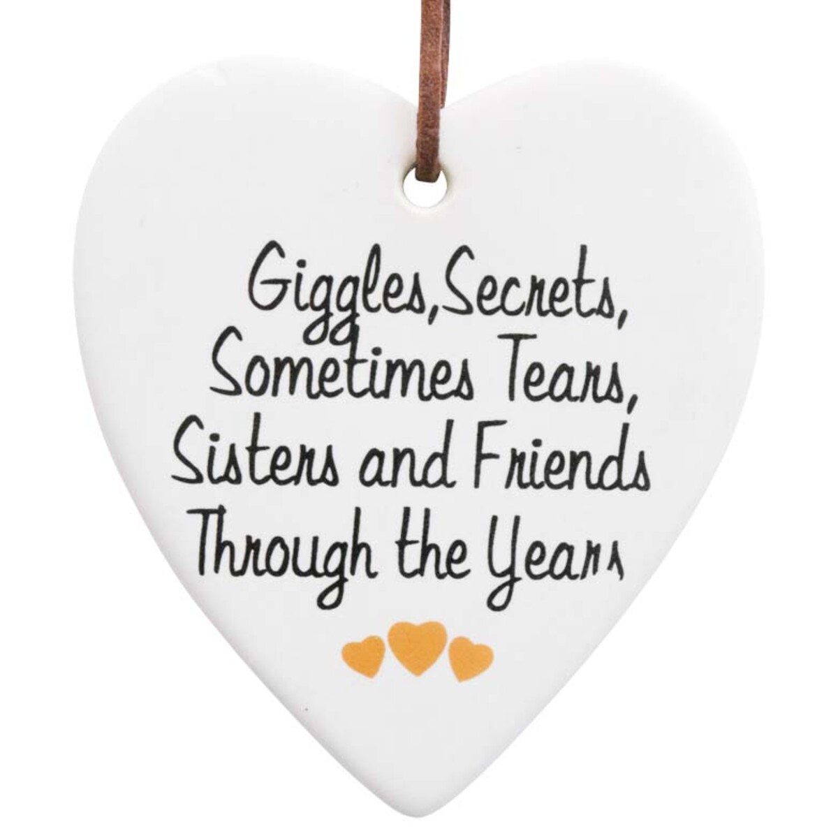 Hanging Heart Sisters is a little statement piece that captures what makes sisterhood really special - we all know it’s not always sunshine and rainbows, right? Sitting at 8x9cm plus its little hanger, this handcrafted ceramic heart adds a warm, heartfelt touch to shelves, walls or even gift wrap. There’s something charming about the handmade finish - each one comes with slight imperfections in the ceramic and even the printing. It makes every piece unique, genuine and a nice reminder to customers that their relationships don’t need to be picture-perfect.