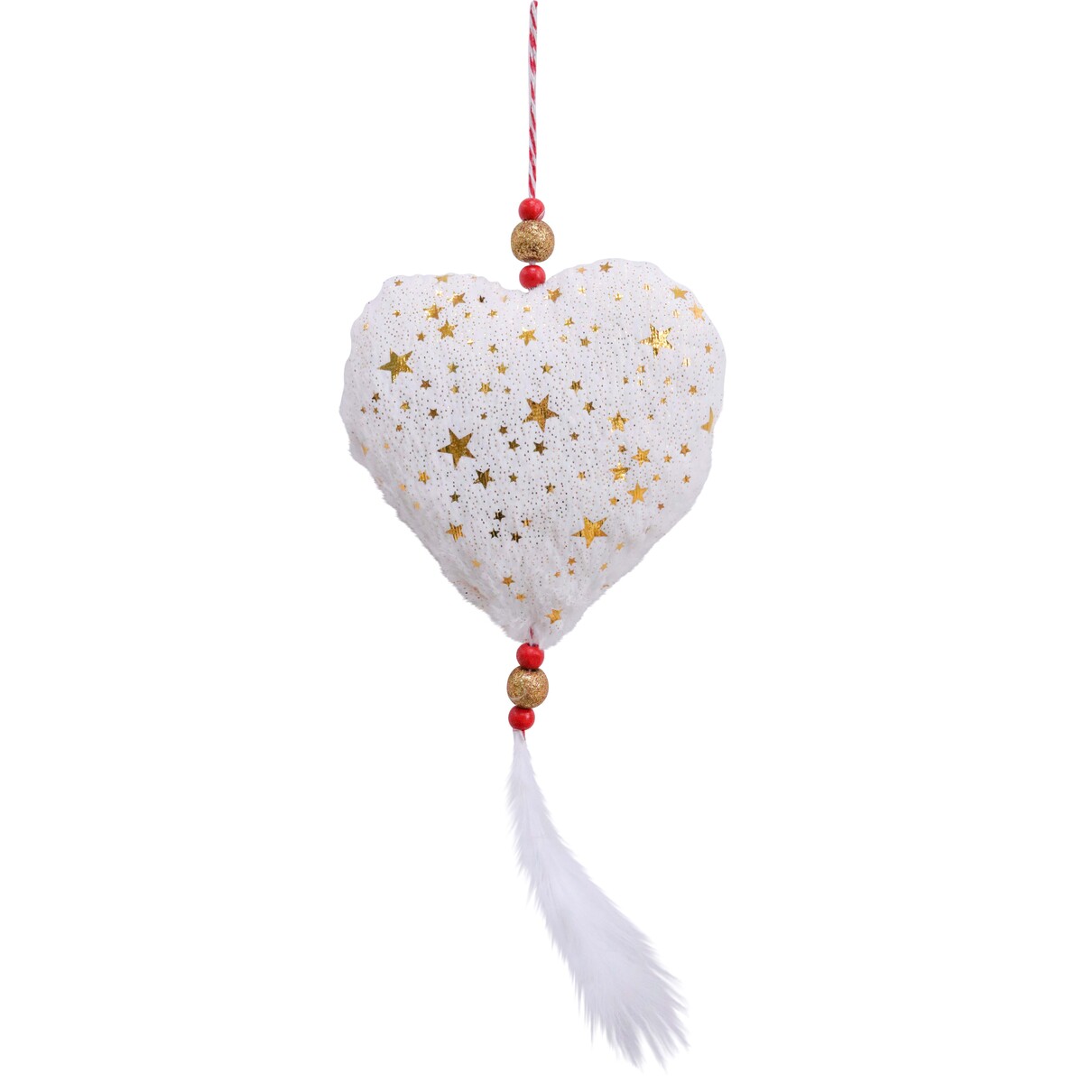 We often find ourselves surprised by how much customers gravitate towards things that feel heartfelt and homey - and the Hanging Heart White/Gold has definitely stolen a few, well, hearts. It’s that perfect blend of whimsy and sophistication - a little bit magical, like if someone left a Valentine’s card at the North Pole. We find the textured white polyester fabric with all those tiny gold stars makes each heart just a bit more unique - the shimmery patterns catch the light but never look gaudy. And that fluffy feather detail is such a good touch - it gives movement when hung from a shelf or window. In terms of display, this 14cm piece is just so easy to style. Mix in with classic Christmas baubles or hang it up year-round in kid’s rooms or as part of festive vignettes around the home or office. Works with everything from country cottage to glam Christmas tables. We genuinely love how its quirky shape plays against other seasonal pieces (but trust us, it doesn’t look out of place among more classic or rustic decor at all).