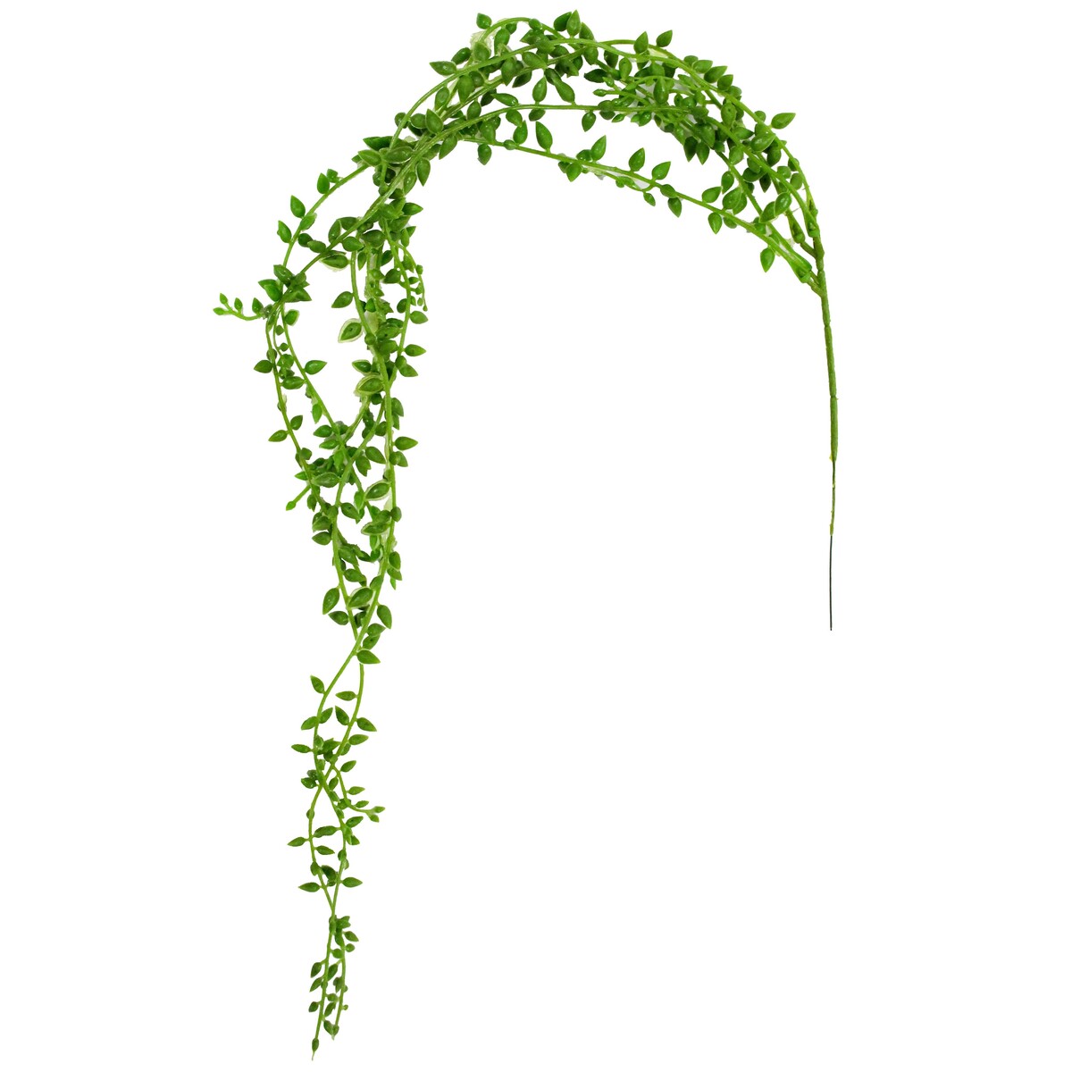 Hanging Pearls Green | 75x11x11cm | Green | PlasticHanging Pearls Green is one of those pieces that works with almost every decorating theme. Just a lovely 75cm trailing cascade of soft foliage, made from durable plastic, in the most serene green. We have to say - its realistic leafy design and natural drape is what sets it apart. Hanging installations can quickly look like cheap plastic if the lines are too straight or shiny, but this style? Not a problem. The texture is subtle and suits minimalist Nordic, vintage French Provincial, and boho looks equally well.We’ve seen this style perform best in hanging planters and wall shelves, but it also sits beautifully on a high bookcase or open office shelving. The light material means it’s great for customers who want to bring greenery into rental properties, busy commercial areas, or even low-light spaces where live plants struggle. No watering required and easy to keep dust-free - we think it’s genuinely one of the most versatile fake plant options for modern living.