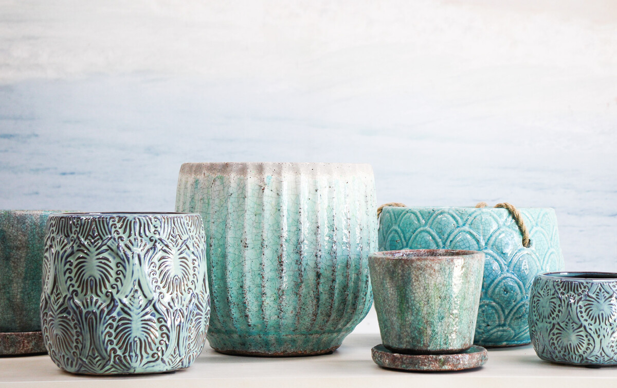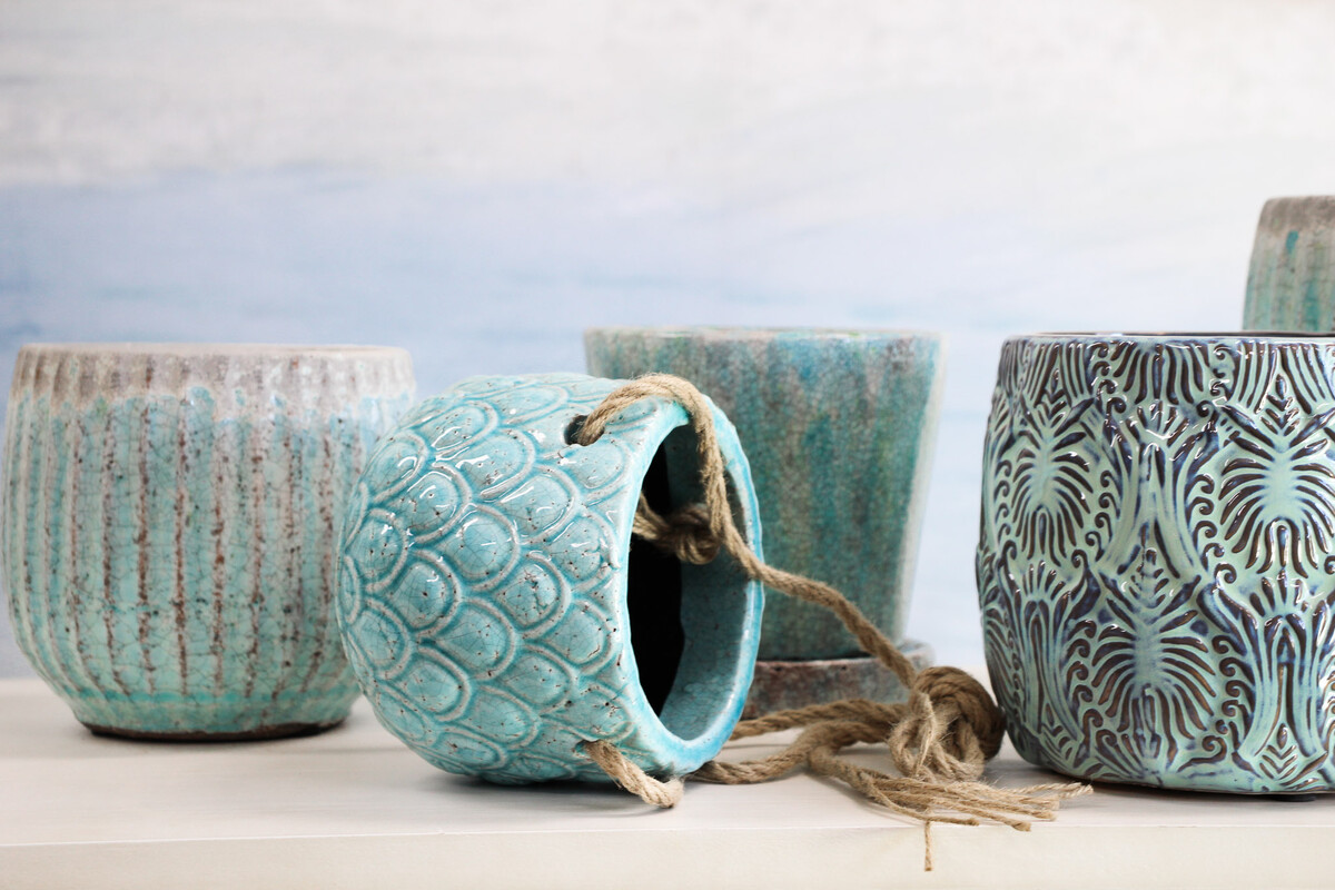 This Hanging Pot S/2 Pineapple Sky is just beautiful, isn’t it? We find it really hard to resist the gorgeous turquoise shade and the way that unique crackle finish catches the eye. It’s so bold, we can imagine it lifting up a boho lounge or adding a fresh pop in a more minimal modern space. The detail on each pot mimics a pineapple’s skin, so there’s that playful textural vibe too - makes us want to reach out and touch it.