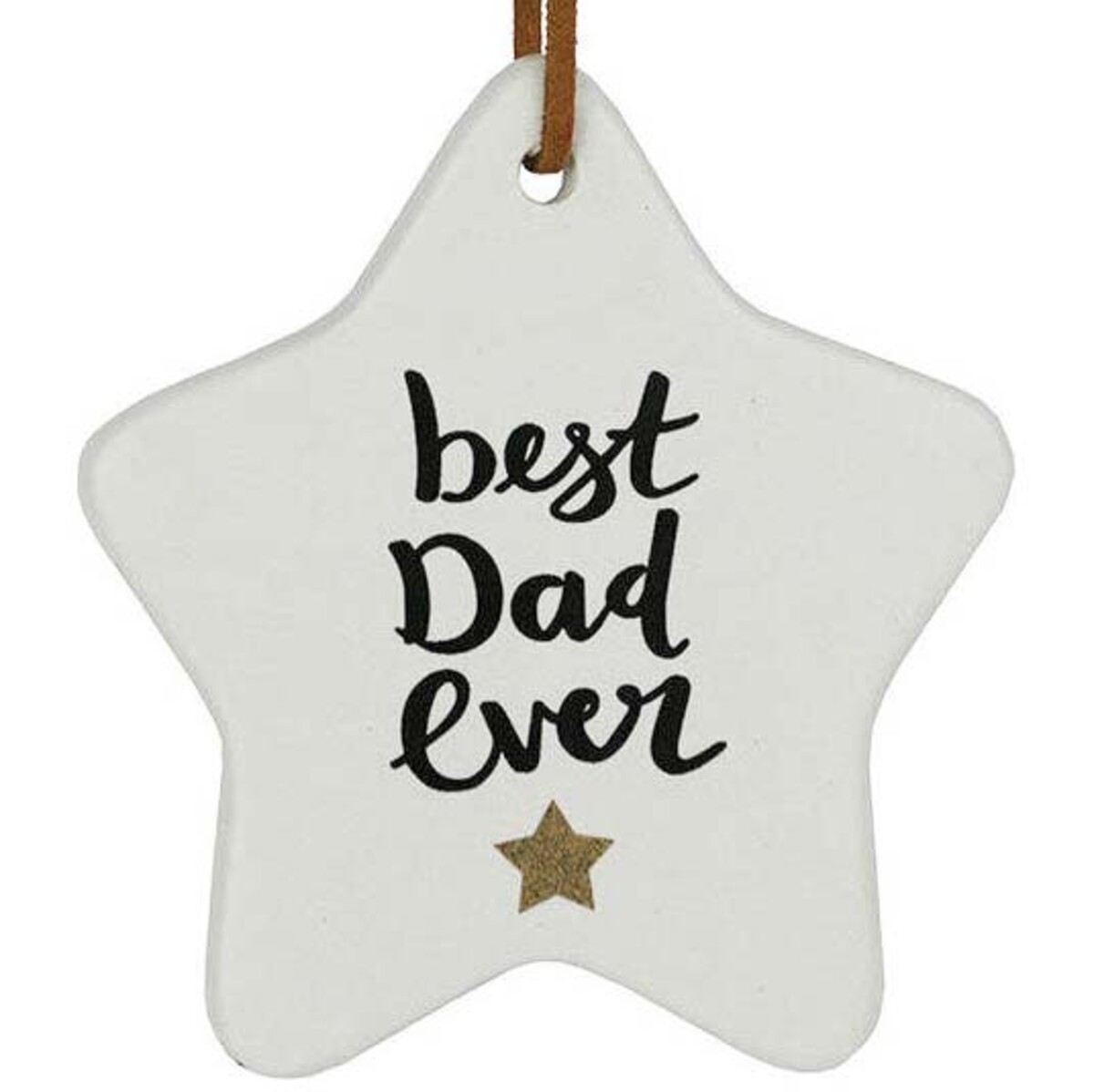 So what we’ve got here is a really delightful little piece called the Hanging Star Dad, and it’s quickly become one of those items people pick up with a smile. We think the simple message, that handwritten script, it all sort of connects emotionally with your customers - people want to say thank you to their dad but not necessarily in a gushy way and this does exactly that. The star shape just feels welcoming too.