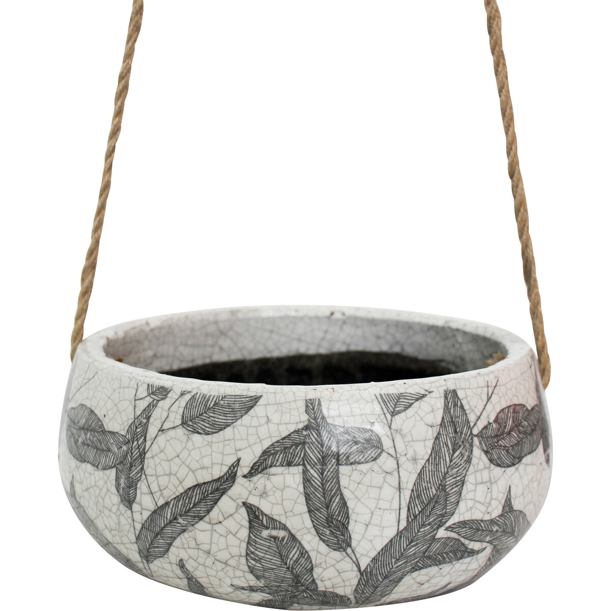 We really do like seeing a product with personality - it’s part of what makes shopping fun for homewares customers, and this Hanging Pot Gum Leaves delivers a lot of that charm. The unique crackle finish isn’t just a talking point. It's genuinely striking in person and sets it apart from most planters, whether it’s on a plant-laden balcony or helping soften a workspace. Now, we know some might view crackling as an imperfection, but in this case, it's an intentional feature and always comes with its own beautiful variations. The black botanical sketch-style gum leaves wind their way around the terracotta bowl and contrast really well against the off-white. It’s surprisingly versatile, though - with bohemian, coastal and more traditional settings all suiting this piece. Measuring 24x24x11cm plus hanger, the rope suspension is both sturdy and stylish. No matter if it's planted out with chain-of-hearts or bushy ferns, customers love something with real artistry like this for hanging greenery anywhere indoors or out.