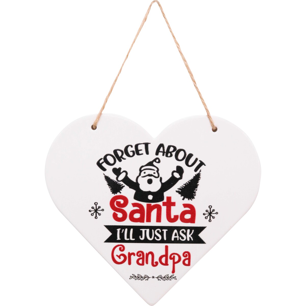 One of our absolute favourites for the festive season is this Heart Ask Grandpa ceramic sign. The cheeky message always gets a smile - Forget About Santa I’ll Just Ask Grandpa - and its fun heart-shaped design goes beautifully on any wall, shelf or Christmas display. We’ve found this size is just about perfect - at 22x19.5cm, it’s big enough to stand out but not so large it becomes overwhelming amongst other decorations. It comes with a handy twine hanger that blends with most seasonal styles, plus the neutral base looks equally lovely in both rustic and modern homes. We love how the red and black print pops off the white ceramic background. It’s great for home decorators who like a bit of wit with their Christmas cheer, but it also makes a standout gift for any family that wants to have a laugh together over the holidays. It’s sturdy without being heavy, and the cheerful font looks great next to anything from pine garlands to sleek metallic ornaments. Those little details matter when people are mixing and matching their decorations, and we love recommending this piece for gift stores, homewares shops or even businesses looking for unique staff presents.