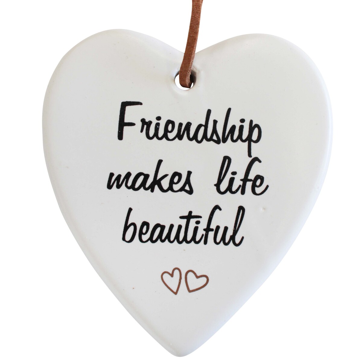 Our Heart Friendship Beautiful ornament is really all about the small things. It's a ceramic hanging heart with a gentle message - 'Friendship makes life beautiful' - and you know what, we just love how sweet that sentiment feels on something so understated. At 8x9cm, it's compact but not easy to miss. The addition of the little ribbon gives it a bit of charm that works for so many spaces. And, because it's all crafted by hand, there are little quirks and imperfections that give each one a touch of individuality - no two exactly alike.
