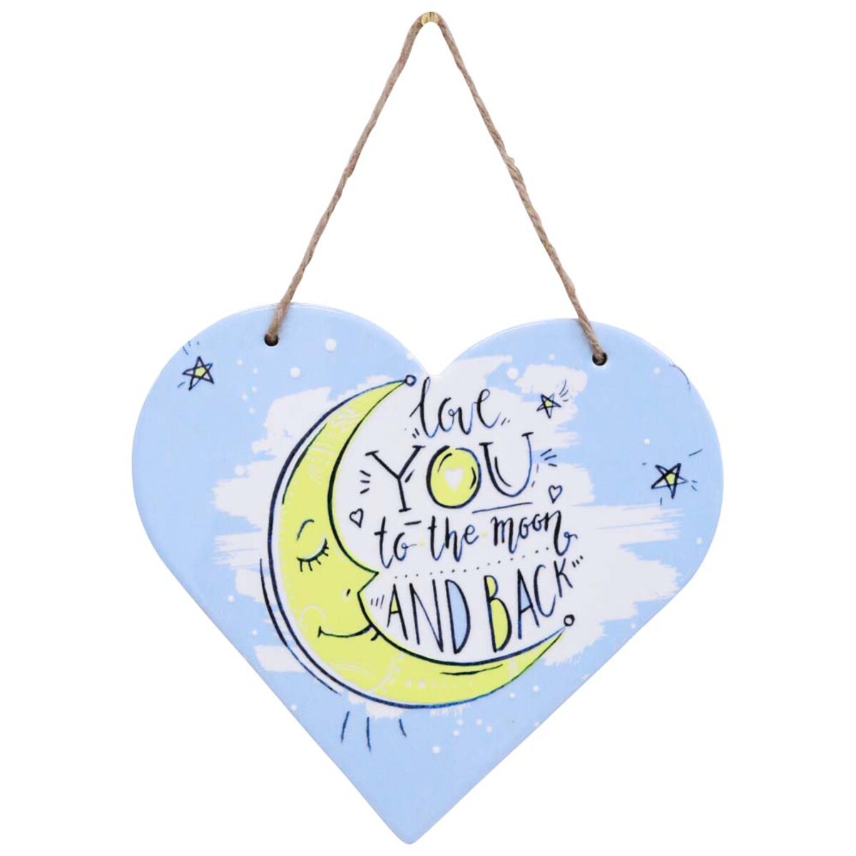 Here's a ceramic wall sign that turns up the nostalgia and keeps things whimsical - this one's just the right mix for that gentle, sentimental decor. Our Heart Moon & Back Ceramic Hanging Sign, measuring 22 x 19.5cm (plus a handy hanger), is really charming - it brings a bit of magic in with its blue sky and crescent moon motif. And the message in the centre - 'Love you to the moon and back' - is one we've heard since we were kids, so there's that quick moment of warmth too.