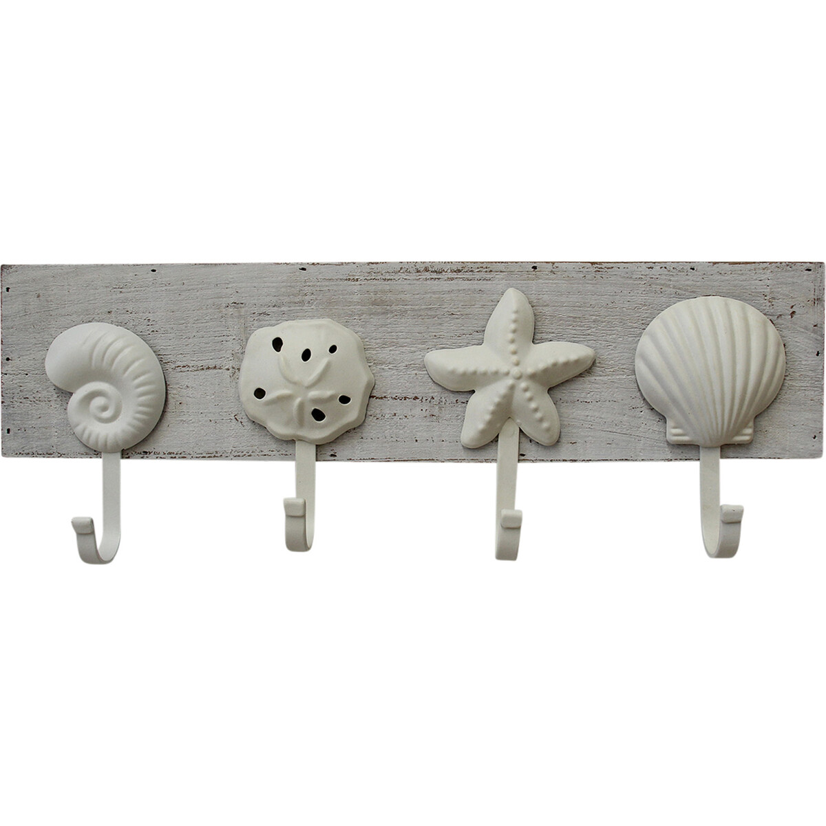 The whitewashed timber backboard immediately reminds us of relaxed seaside holidays. Four metal hooks, each topped with a unique shell motif – a spiral nautilus, a sand dollar, a starfish and a scallop – are hand-finished in matt white. Each coastal shape is detailed but not fussy and offers retailers a really attractive display option that complements so many decor styles. Beach houses or city flats. Shabby chic or classic Hamptons style homes. They really offer great versatility because the neutral white colour works well almost anywhere.