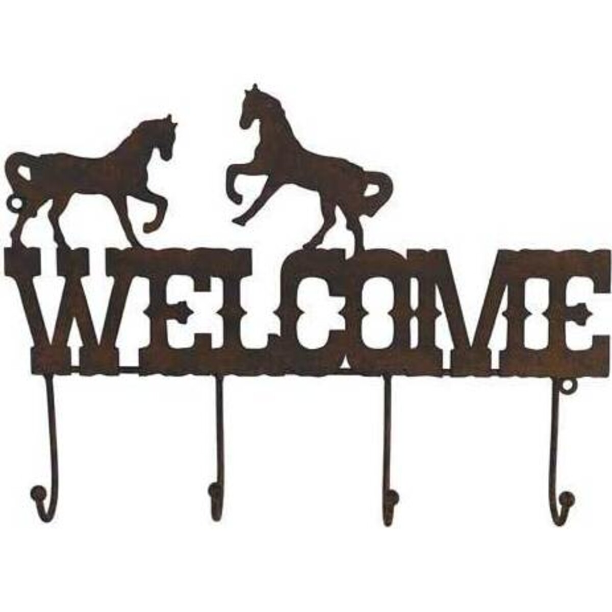 If your customers are keen equestrian fans or horse lovers, this rustic metal welcome hook is a real winner. The detailed horses and bold 'Welcome' really pop against the aged brown finish, making it perfect for entryways, sheds, even tack rooms - anywhere you need a bit of country charm. At 38x28x4 cm, it's got enough space for a family’s worth of coats or gear, and it looks great as both décor and practical storage.
