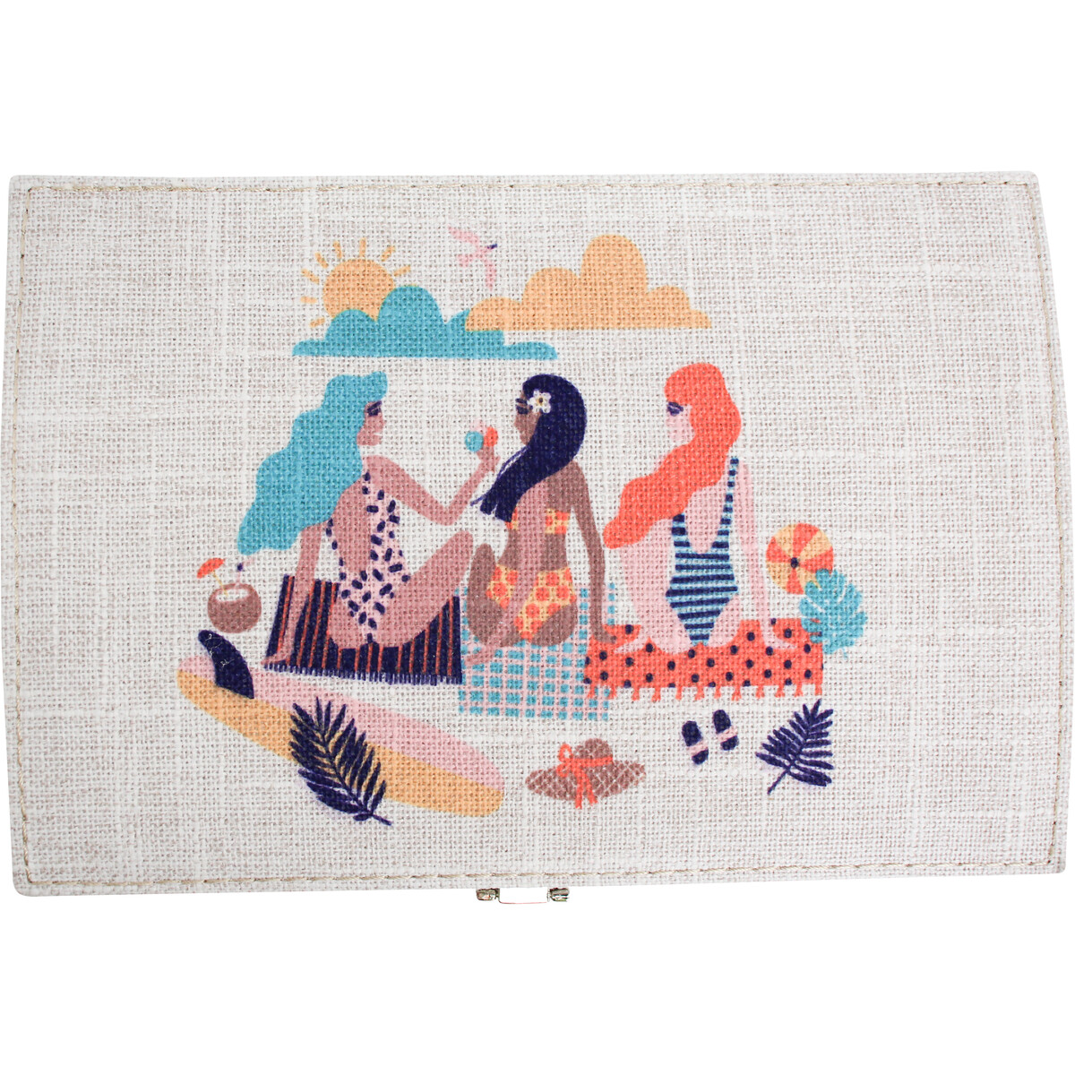 Jewellery Box Summer Girls - 22x16x8cm We absolutely love this jewellery box. It’s got a fun, summery vibe that catches the eye and adds a bit of personality to any space. The playful design, with its illustration of girls having a beachy day out, really does stand out from the usual jewellery boxes you see around. Not only is it pretty to look at, it’s also practical. The six divided sections are perfect for keeping everything organised - rings, earrings, little trinkets, whatever your customers need to tuck away safely. And, because it closes up nicely with a sturdy little clasp, there’s no need to worry about things getting scattered all over. The box is made from linen and MDF and comes in a neutral beige that blends into all sorts of different décor - super versatile. Great for bedrooms or even just as a decorative addition to a bathroom vanity or shelf - maybe even a fun gift idea? This one really does have broad appeal because it’s so easy to match with different styles. It’s sturdy too, so it’s not just for show. A great storage solution that adds charm while staying functional.