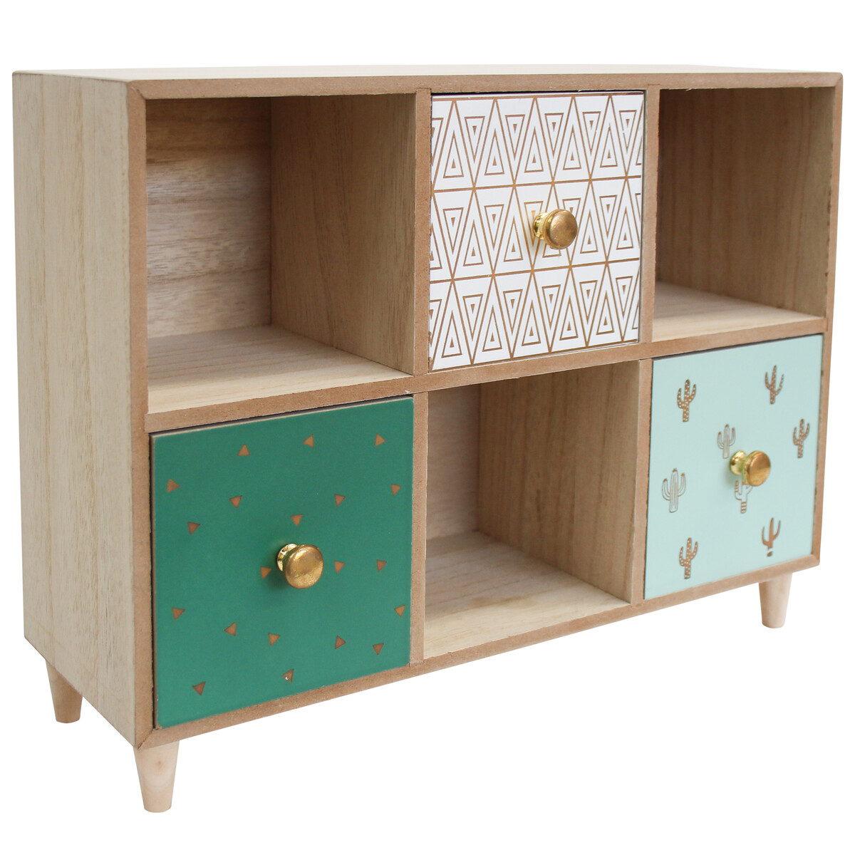 We can see this one standing out in any shop display - the Indie 1 jewellery drawers. It’s a compact and trendy organiser for jewellery or other trinkets, measuring 32.5 x 25 x 11cm and crafted from quality MDF for that natural look. The mix of geometric and cactus patterns on the front really makes it pop, so it’ll be one of those items your customers are drawn to straight away, especially if they’re looking for something to add a bit of indie flair to their space.