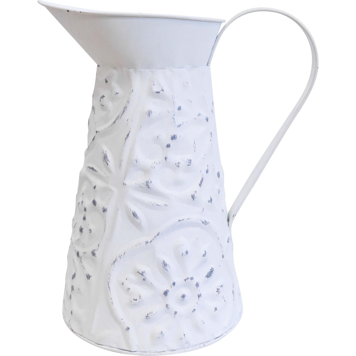 Our Jug Sml Vintage White is a real highlight for us. We think it ticks all the boxes for customers wanting that calm French country cottage vibe, especially in smaller spaces. At 22x15.5x26cm, it’s not too big or too small - just right for adding vintage-inspired charm to sideboards, desks, or even large windowsills. We crafted this one from durable iron with an embossed folk floral pattern and gave it a distressed white finish that means no two are quite alike.