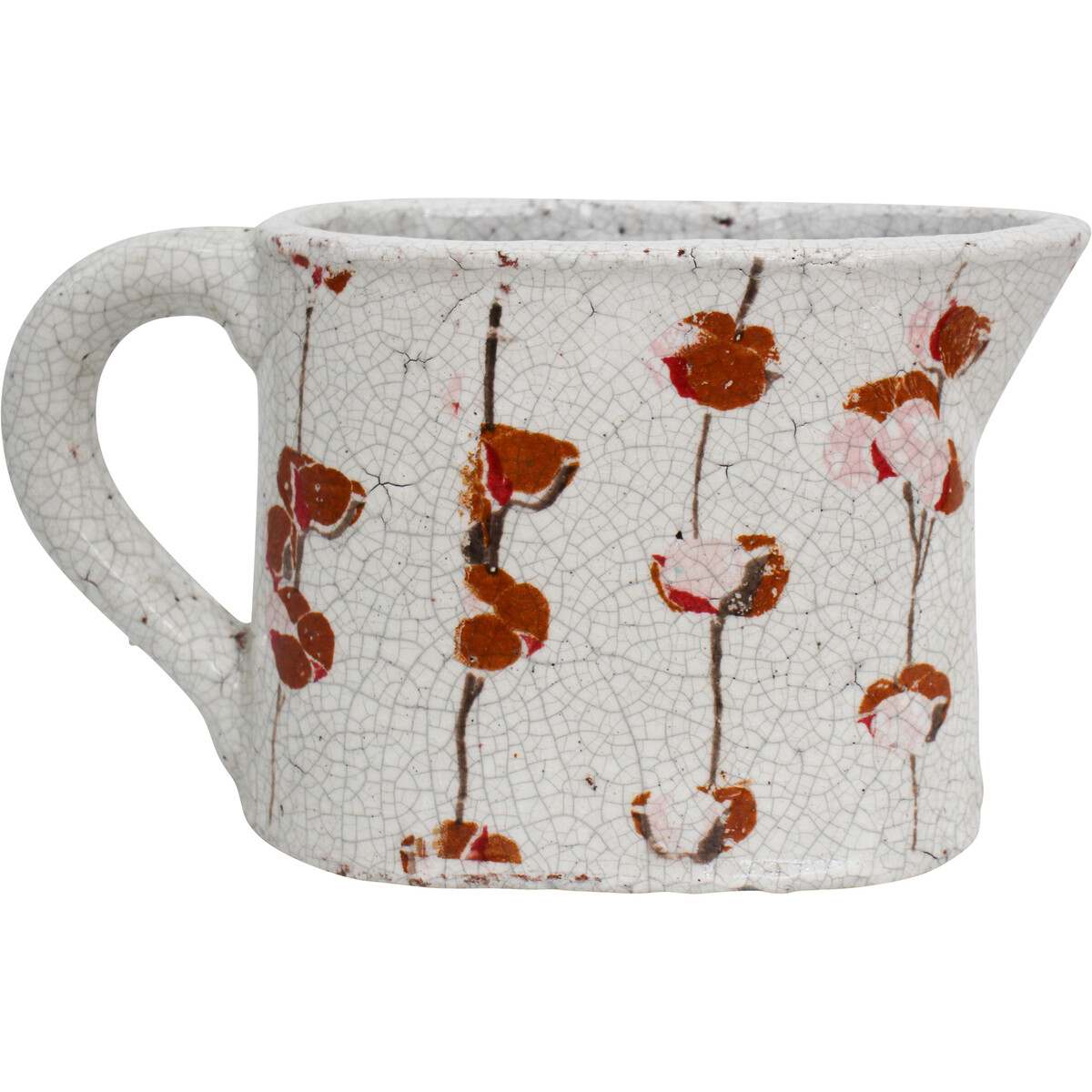 We absolutely love our Jug Squat Cotton – it’s one of those pieces that immediately grabs your attention because of the unique crackle finish. It really is something special and not at all a manufacturing fault. Each jug has its own personality, and this adds such character to any display or setting. The subtle hand-painted cotton motifs and the naturally textured terracotta are just spot on for anyone looking for a piece that feels both rustic and artistic at the same time.