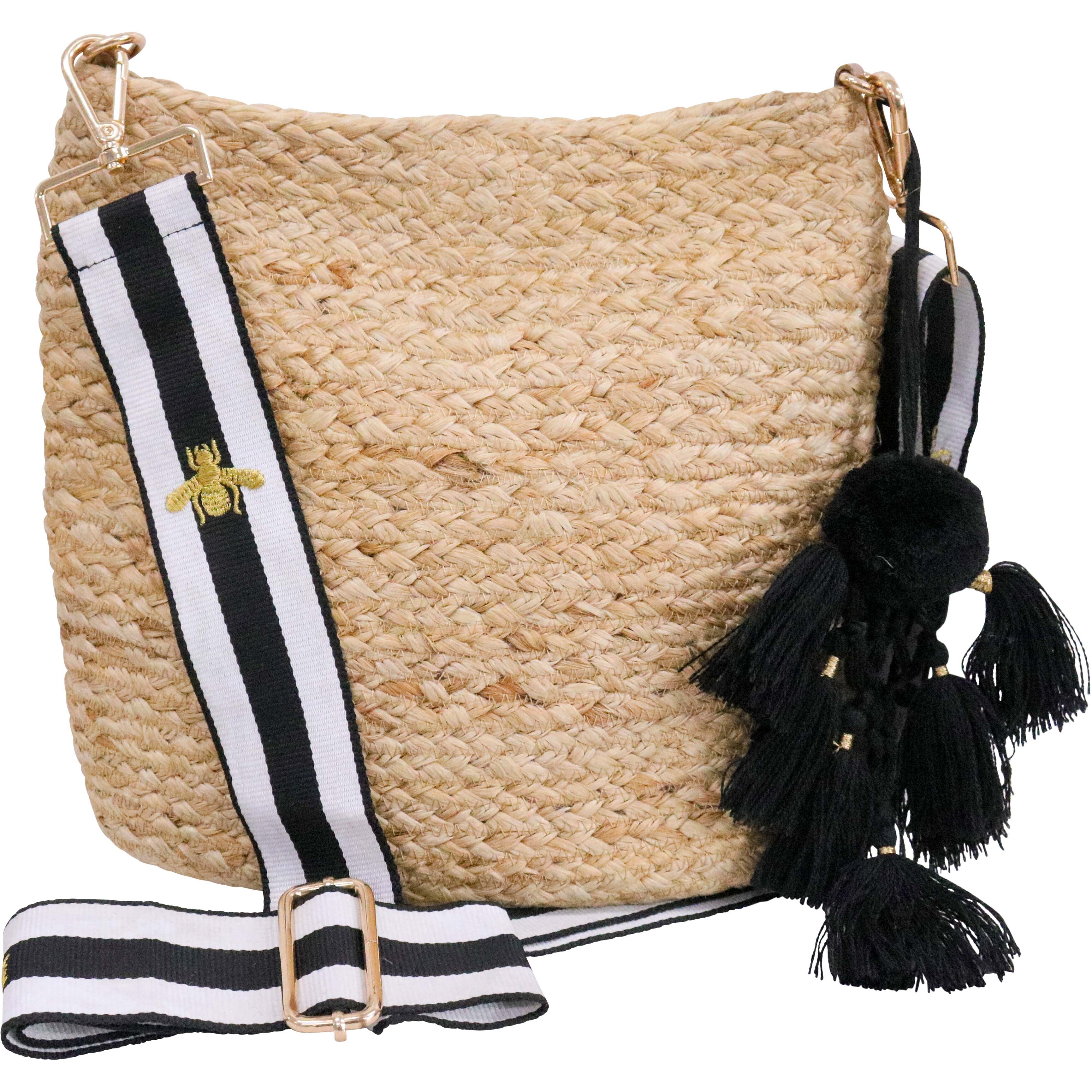 Jute Tote / Bee Cross Body Strap