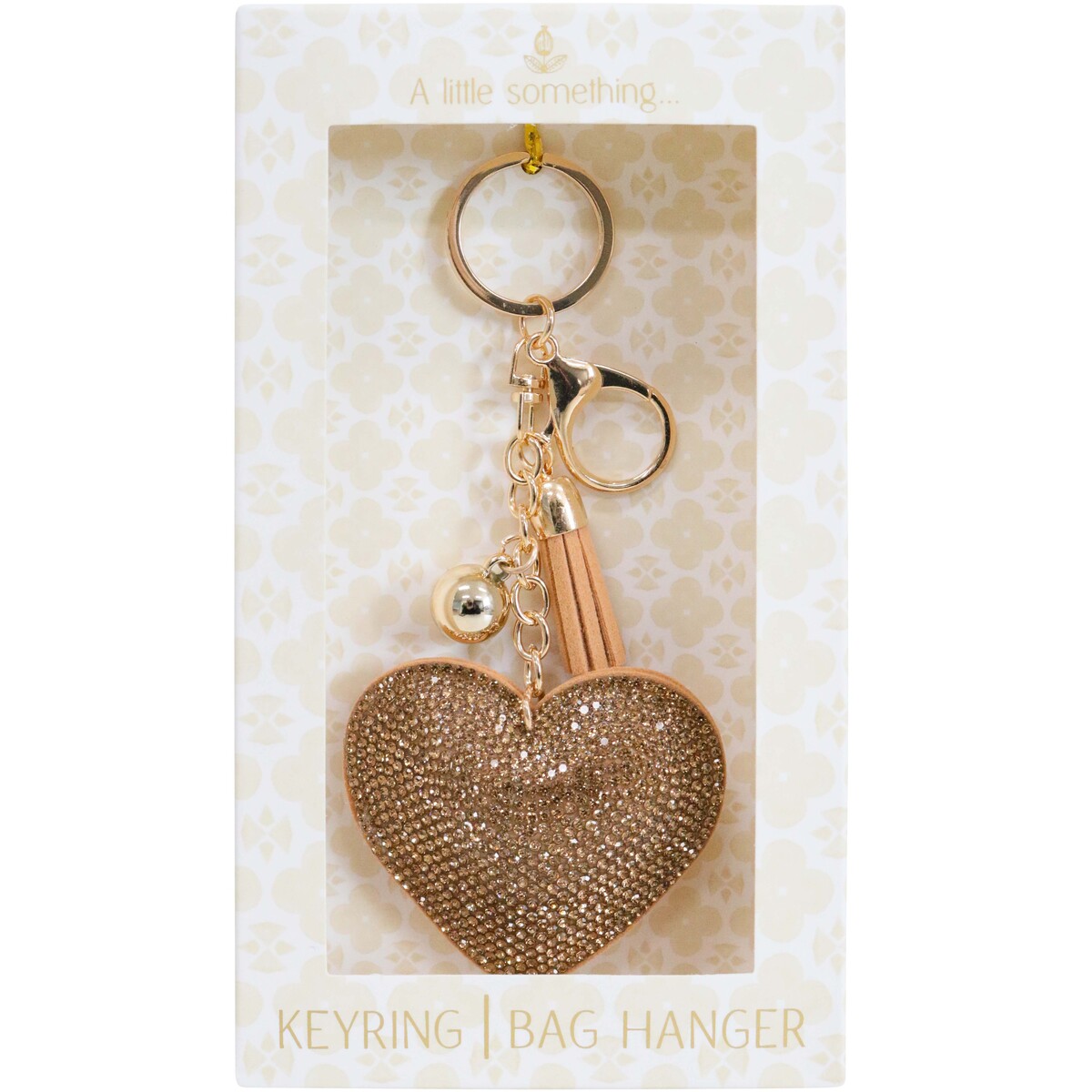We've got a soft spot for this heart-shaped keyring and bag hanger. The gold-toned finish, sparkly gem detail, and super cute design make it a great addition to any handbag. Perfect for gifting or sprucing up bags, this 6x14x1cm hanger is sure to catch the eye of shoppers looking for a pop of charm.