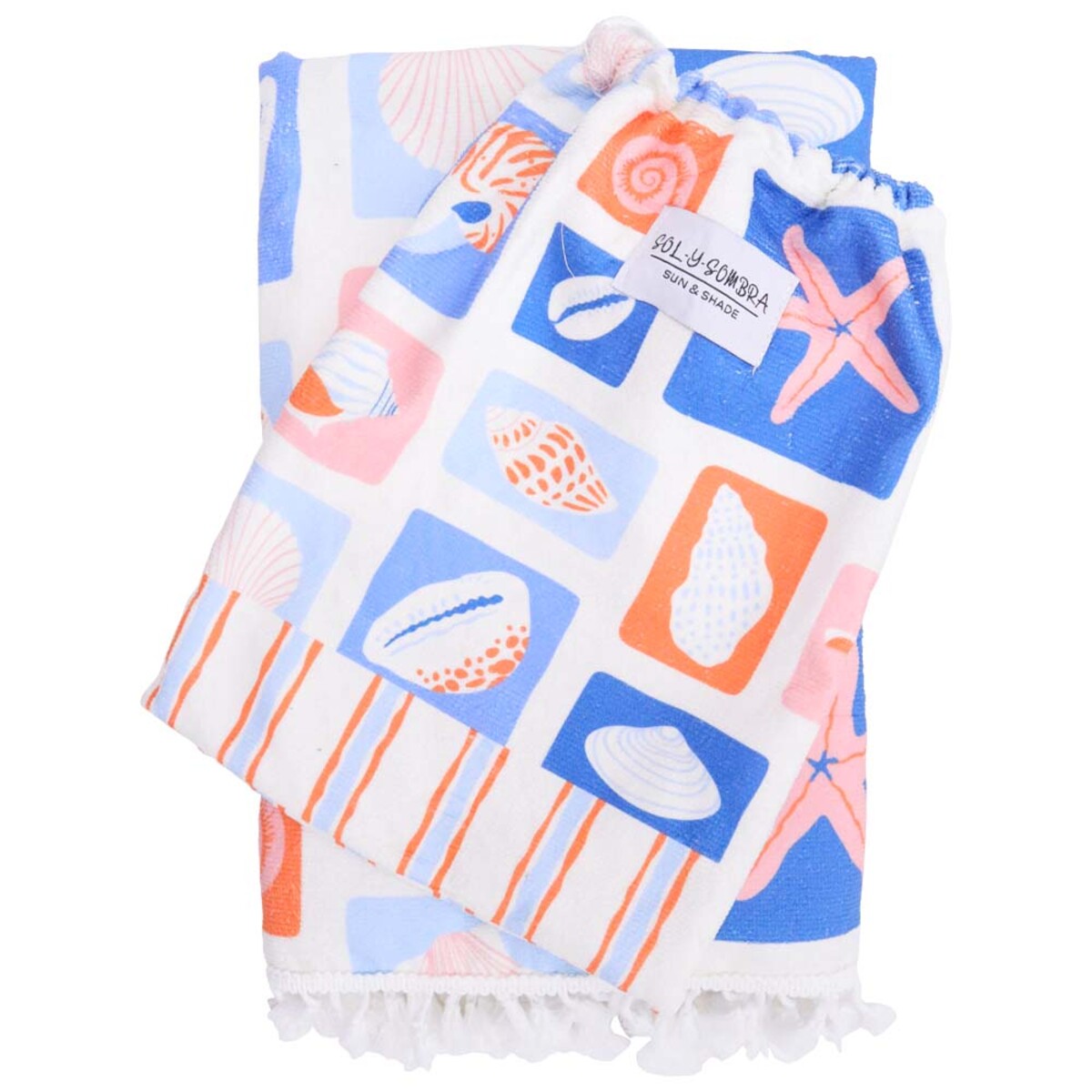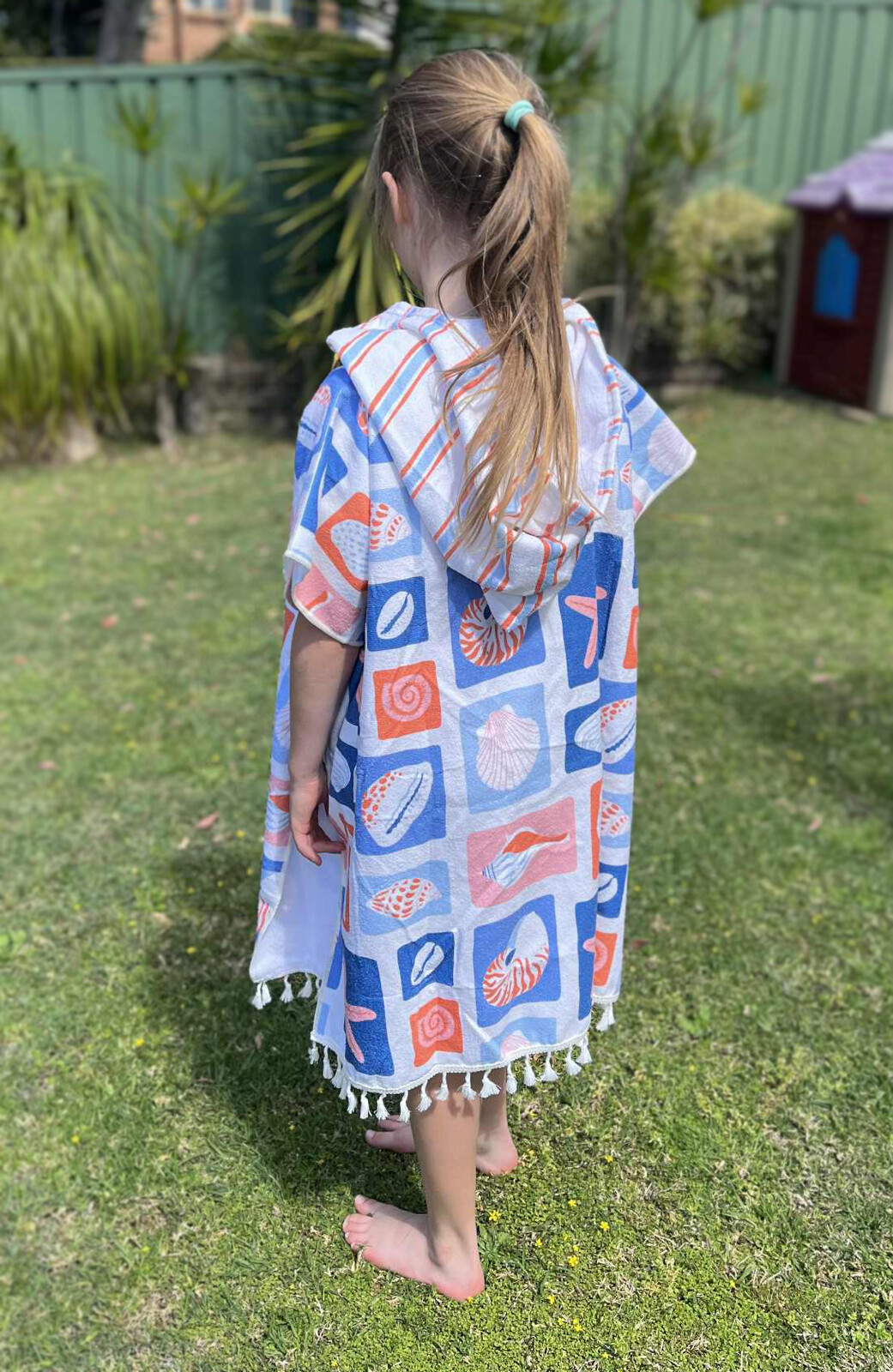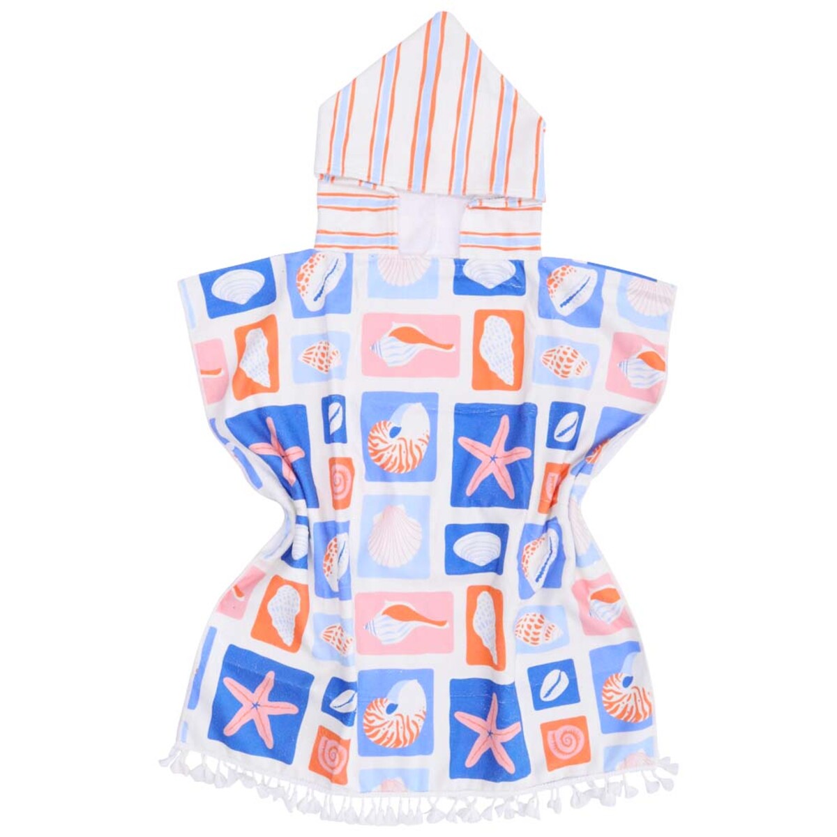Who doesn’t love that instant beachy feel? We’ve got just the thing for customers’ families - our Kids Towel Poncho in Shells. It’s 70x70 cm with a cute little hood. Perfect size for the little ones but not so big they’ll be getting tangled up. And these colours! None of that boring washed-out stuff. Big, clear shell graphics - a proper mix of soft peach and bright blues. It works whether you live by the sea or just wish you did.