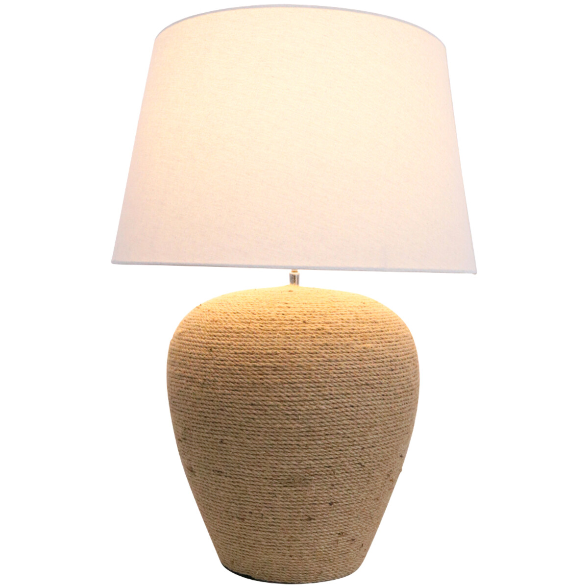 The Lamp Mannhatton Natural comes with a truly lovely rope-wrapped base, and there's just something so calming about the whole thing. The lamp’s got a relaxed, slightly coastal or rustic aesthetic, but not in a way that feels too heavy handed. It has a really simple, neat drum shade - not too narrow or wide. The dimensions (50x50x70.5 cm) make it pretty substantial on the table as well.