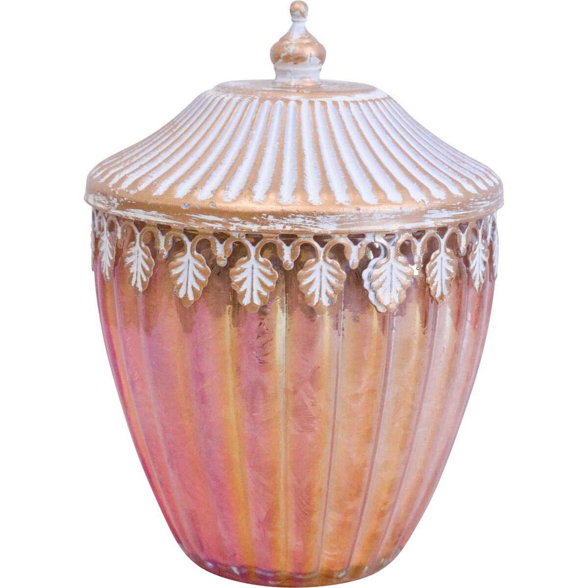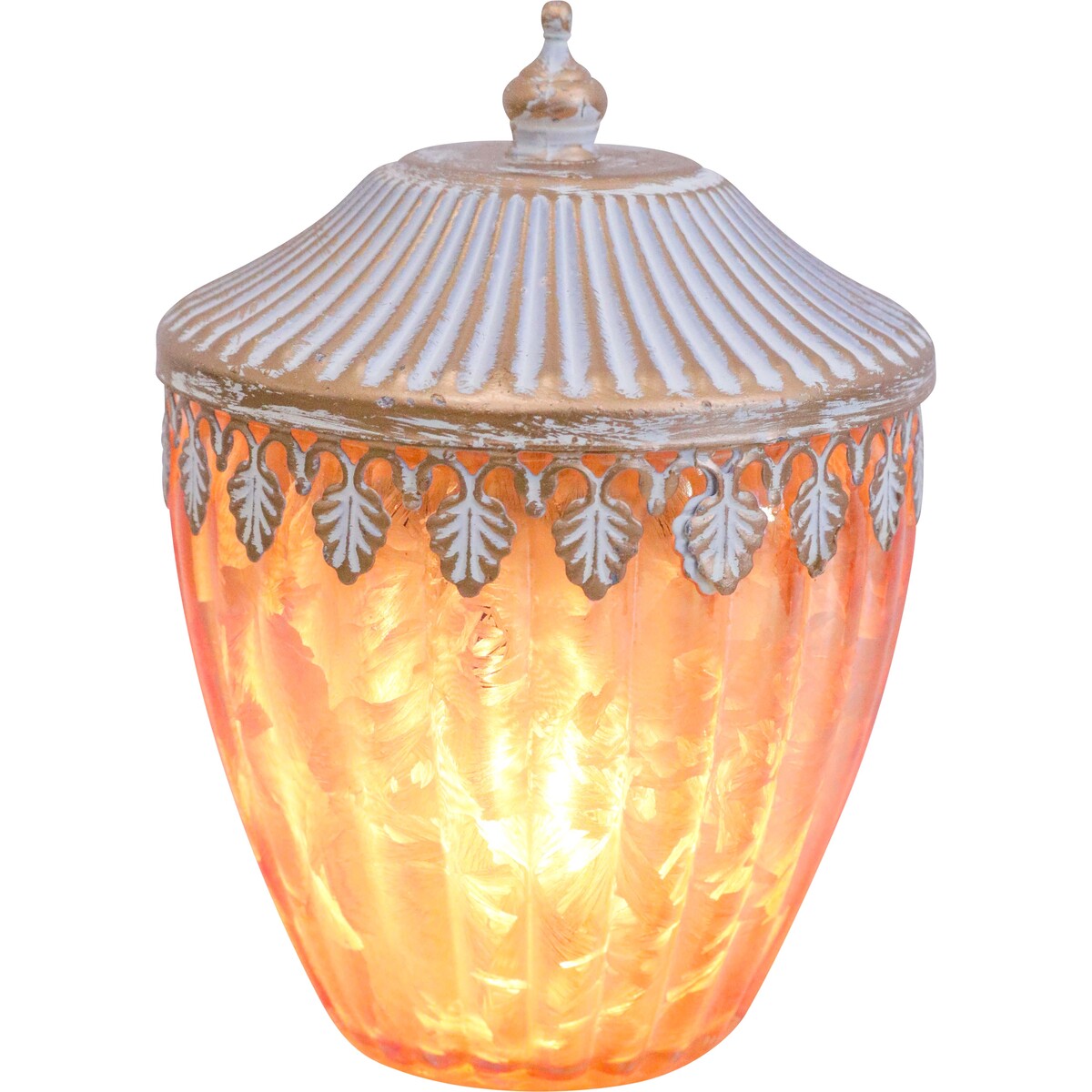 Here’s a little beauty that’s got us feeling all sorts of nostalgic for vintage style - this lantern’s soft, blush-coloured glass body is really something special, especially with the elegant, metal awning and leaf trim on top. We love the level of detail here - at 10.5x10.5x14.5cm, it fits in easily anywhere, but still manages to stand out thanks to the way it throws out a soft, ambient glow after dark. Our customers can pop this one on an entryway table or windowsill and let the light play up those pretty colours - we think it’s a solid choice for anyone after a touch of romantic warmth and charm in their home or shop.
