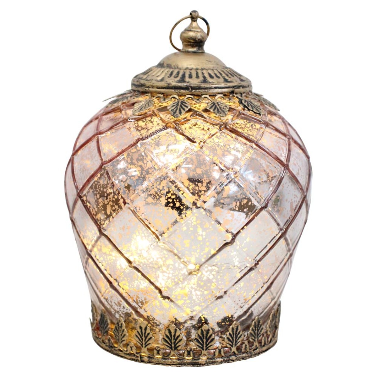 We like to think of our large LED Foil Lantern as the perfect mix of glamour and a little nostalgia. It’s got this pear-shaped body in 12.X12.5X17.5cm that brings back memories of glasswork from years past, but it’s freshened up for now with a cut diamond crisscross pattern. What really makes this pop is the vintage blush and gold foil - it’s not your typical clear glass piece, it’s got so much warmth and shine you can really tell it apart from others.