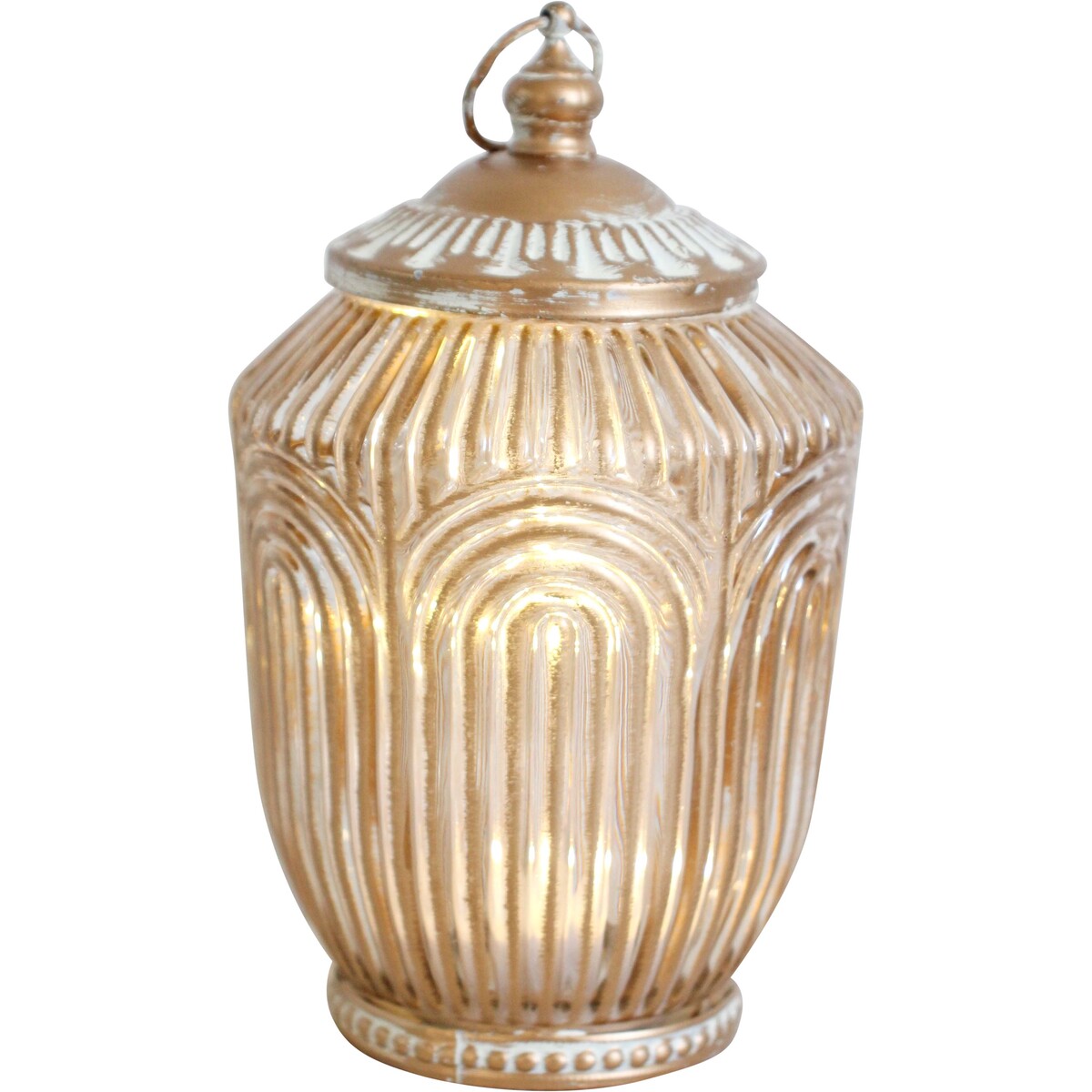 We have found this lantern perfect for those looking to add a little bit of warmth and character to any space - home, office, you name it. The Lantern LED Linear Gold/Wash (9x9x15cm) has a way of standing out without being over the top. There is something about that vintage-meets-modern blend of glass and metal with the gold-wash finish. It is one of those pieces that can easily slip into almost any décor style - boho, contemporary, classic. It is especially great for gifting, too, which means it’s going to have some real shelf appeal. The LED lighting is inside - no fuss with cables or wires. We know many customers love that kind of convenience since they can shift it around as they like. It already comes with button batteries inside for instant styling, which is good news because no one likes buying batteries separately. With its distinctive arch pattern and soft metallic luster, our Lantern LED Linear Gold/Wash makes an eye-catching centrepiece on a shelf or table display.