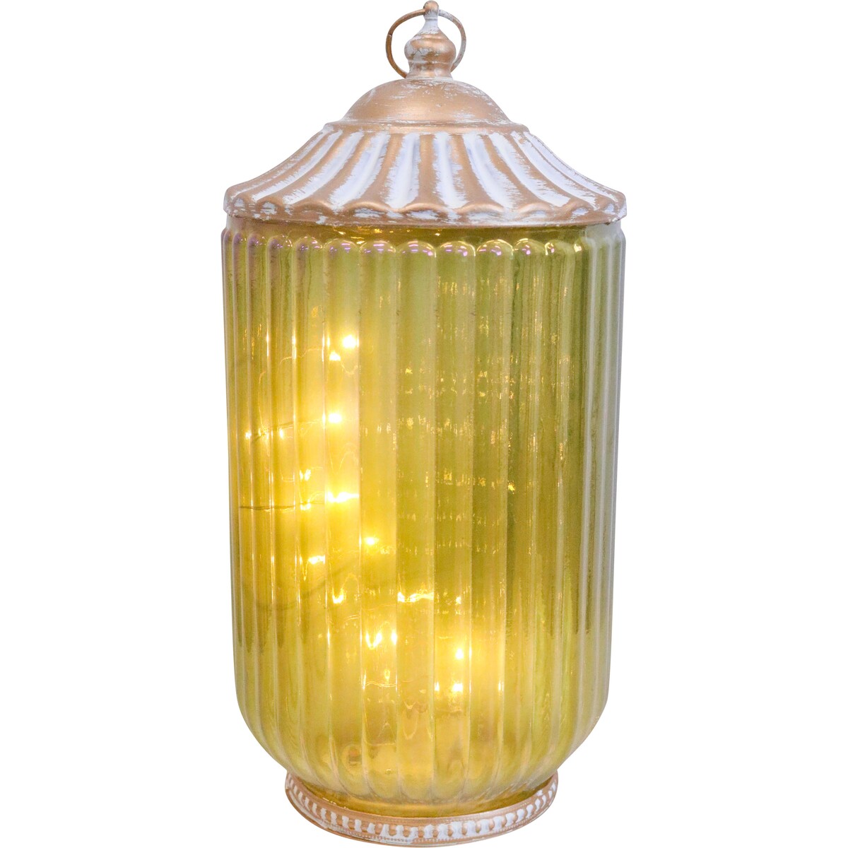 We know that feeling of delight when we spot a homewares item that isn’t just a conversation starter - it can actually tie a whole room together. Our XL Vasey Lantern LED is kind of like that - and not just because it’s stunning at first sight. We say that because it’s got this beautiful two-tone green and yellow tinted glass with ridged surface detail, highlighted by a classically contoured gold and white metallic lid and base. Standing tall at 23cm and 11cm wide, there’s an extra spacious quality to it. It looks fantastic on coffee tables, on shelves - really anywhere there’s space for a generously sized, vintage-inspired lantern vase. Customers love the versatility for using it at home, in the office, or giving as a show-stopper gift. As much as we’re partial to eclectic decor styles, we have to admit this one does suit a whole range of interior looks from classical to contemporary, maximalist to industrial chic.