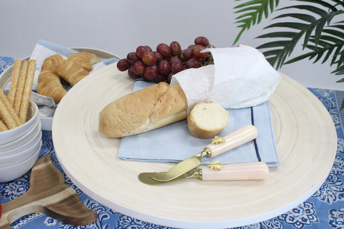 We love the understated beauty of our Lazy Susan Spun White. It's one of those pieces that fits effortlessly into just about any home decor style, from coastal and minimalist to scandi or contemporary. We find the natural bamboo material and hand-finished whitewash texture really give it character. Each one is a little different - not a fault, but we think that’s what makes it special. Measuring 45x45x4cm, it’s a substantial centrepiece that works wonders on dining tables, kitchen islands, or coffee tables. It’s food safe too. Great for cheese platters and canapés during gatherings, or just putting all the bits and pieces in one spot to make the space feel more intentional. The soft white tone doesn’t fight with other decor items either - just plays nicely with what your customer already owns. Subtle concentric circles add texture without being over-the-top. Easy to sell in-store, especially when shown loaded up with treats or candles.