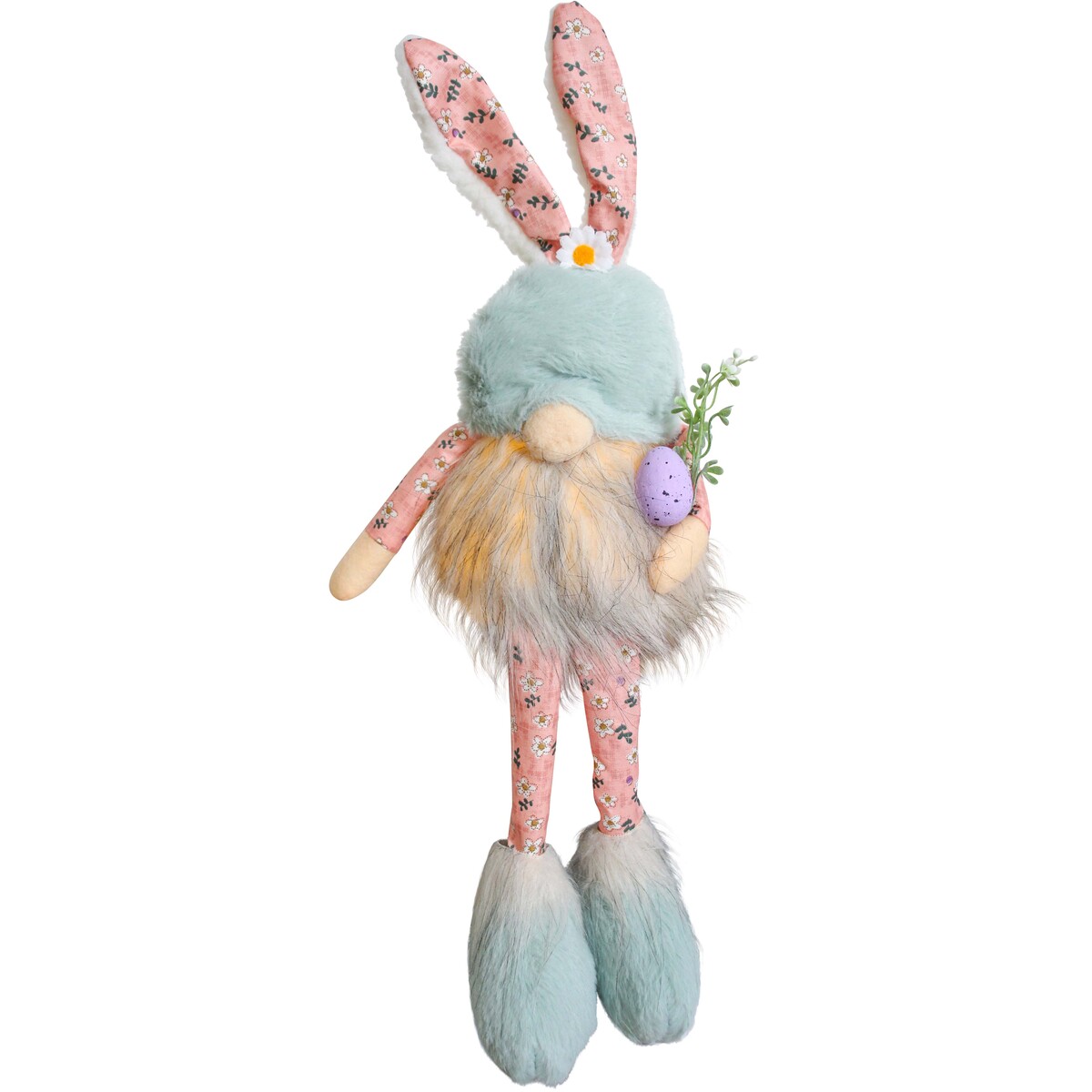We like his unique design details - the plush body with faux fur, spotty pastel purple egg and floral accessories. He looks great with both modern and cottage-inspired interiors. In fact, we can see him being used in so many fun ways - maybe perched by the front door for guests or nestled into an office nook for a bit of fun. The tiny LED lights hidden inside add gentle glow that isn’t harsh or intrusive, making him super eye-catching at night but subtle during the day.