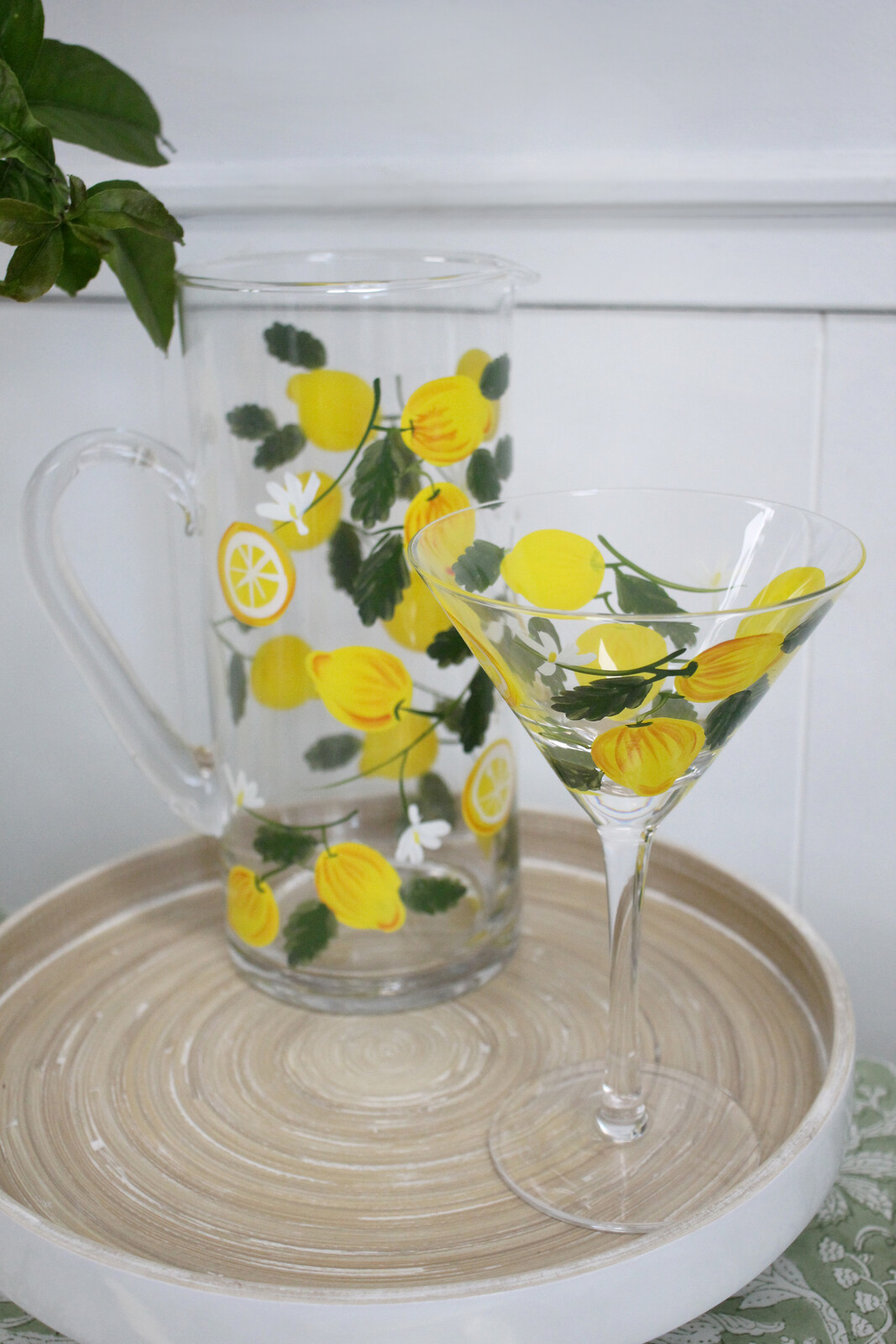 We thought it would be fun to introduce you to our Lemoncello Martini Glass - it's a bit of a show-stopper. It's got this really fresh lemon motif and gorgeous green leaves that look hand-painted, but actually, it’s a quality decal. Honestly, we can see these flying off the shelf in gift shops and homeware boutiques, especially with how popular citrus-inspired kitchen decor has become.