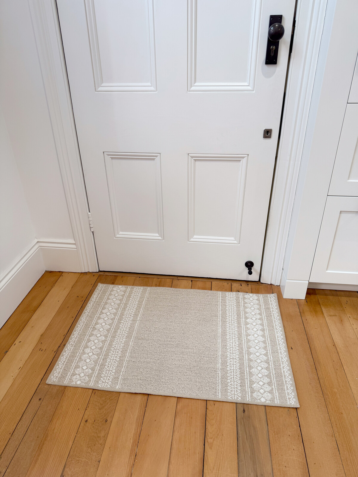 We have to say, the Jabari Mat is genuinely one of those products that feels quietly special. We love how it manages to combine that calm, neutral palette with detailed patterning, giving it a real contemporary-boho feel. And it's such a versatile size - 60 by 90 centimetres - which makes it brilliant for shops wanting something that works across different living spaces. The design is really subtle without being plain - and we've all had those moments with a mat that's a bit loud for our space.