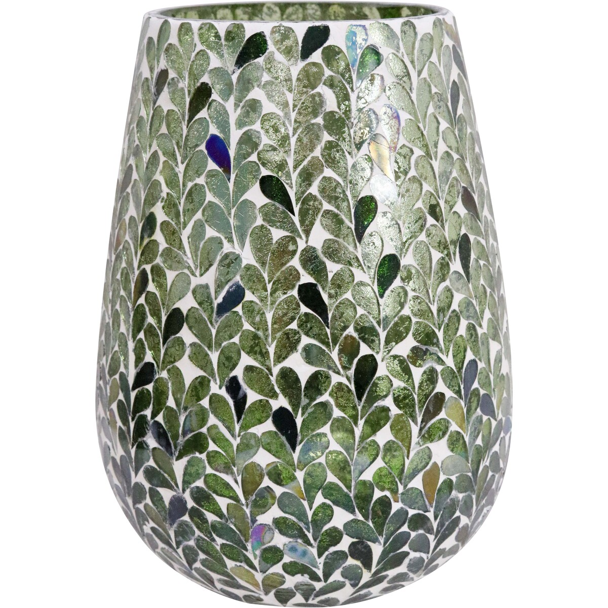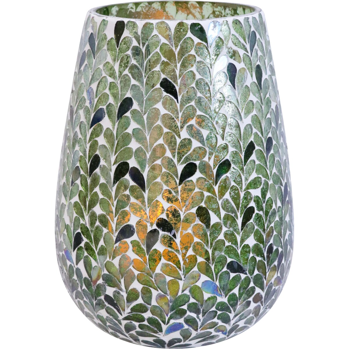 Elevate your home décor with this stunning Mosaic Lantern/Vase, crafted from high-quality glass and adorned with intricate mosaic patterns in vibrant green hues. Perfect for both indoor and outdoor settings, this versatile piece functions beautifully as a lantern or vase. Retailers, entice your customers with this eye-catching accent that effortlessly adds elegance and charm to any space, encouraging repeat visits and driving sales.