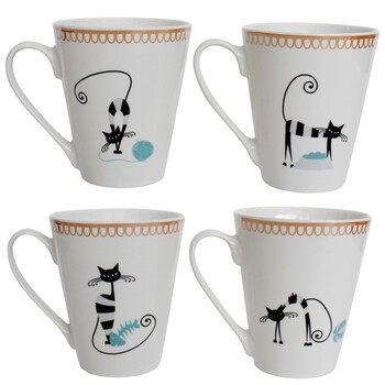 The black-and-white cats are like these elegant little weirdos (we mean that as a compliment), with these curly tails that draw the eye. And those peachy borders are subtle - they pull the design together and make the mugs more “gift-y” if you know what we mean? People who like unique homewares will gravitate towards these. We have to stress they’re handwash only - not for the dishwasher or microwave.