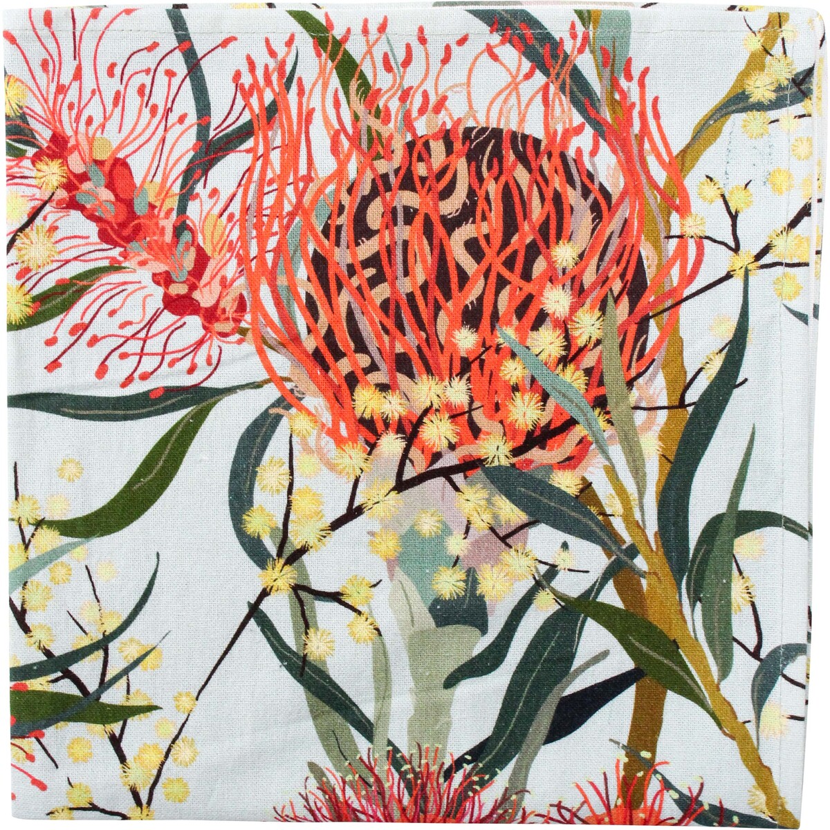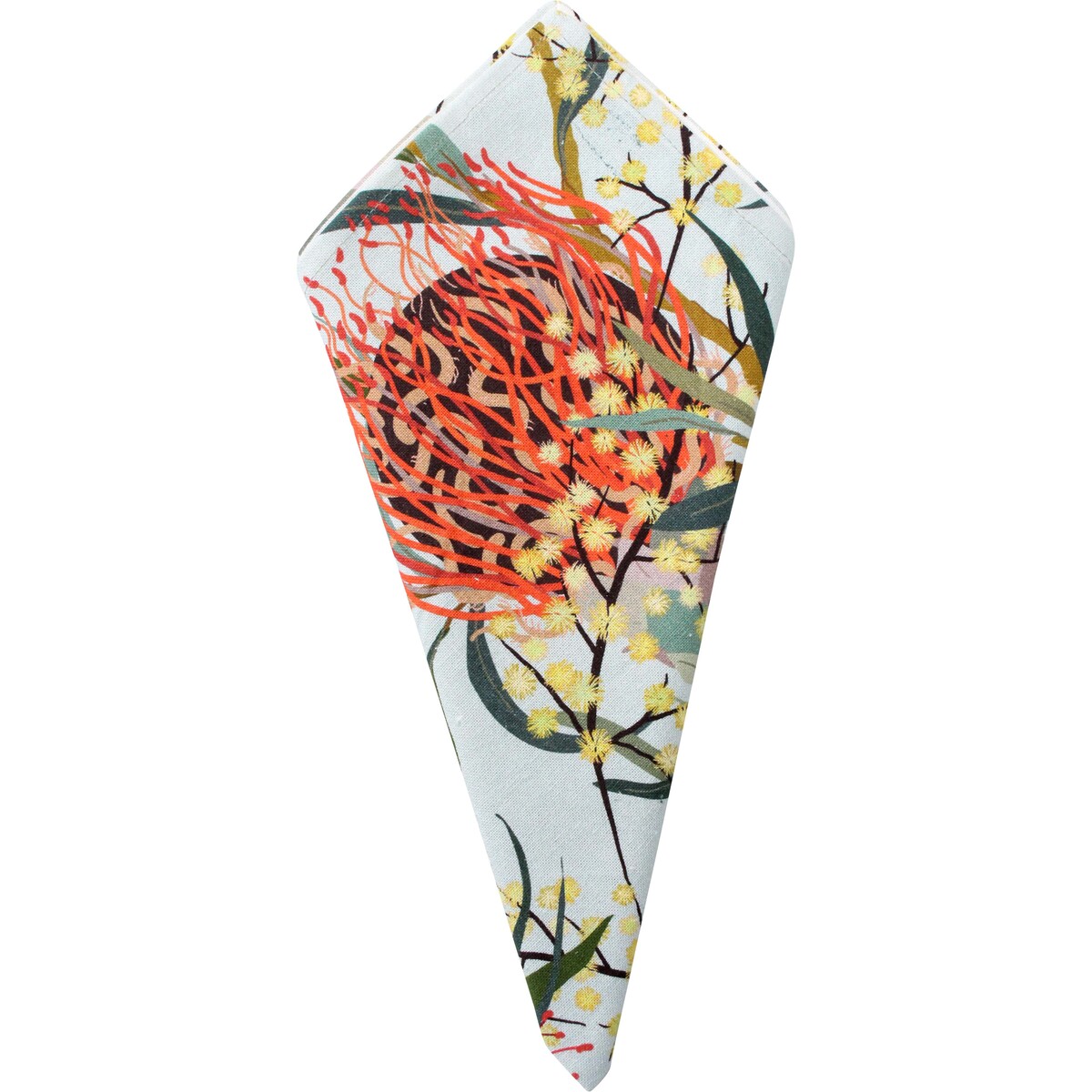 There's always something to be said for Aussie flora - especially when it comes to adding a soft splash of colour to a table setting. Our Napkin Gumflower isn’t just a napkin - it’s an accent piece that brings the outdoors in, all year round. We really love that it manages to be subtle and bold at the same time, pairing eucalyptus greens with those spectacular coral-red gum blossoms. The 100% cotton material is hard-wearing and meant to last, but gentle enough on the skin for regular use - simply cold wash on delicate and avoid direct sunlight when drying to keep everything vibrant. It will never get old seeing the way people react to a well-chosen, artistic napkin like this one. And if you ask us, their botanical beauty and lively palette go beautifully with contemporary, traditional or even more eclectic decor aesthetics. The price listed is per piece - we find that most retailers stock these as individual items rather than as bundles, so your customers can mix and match.