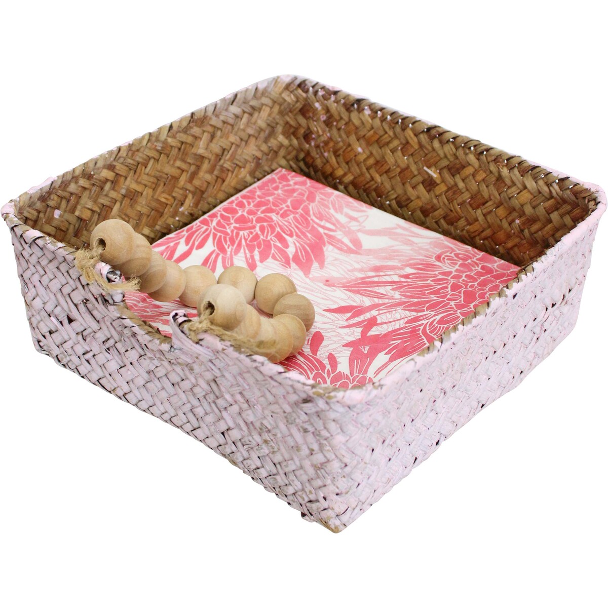 There's a reason we keep coming back to this Napkin Holder - and it's not just because of the neat way it keeps napkins in place. This gorgeous Napkin Holder with a washed pink finish and those chunky wooden beads for handles is exactly the kind of thing that grabs attention on a coffee table or sideboard. It’s sturdy, but not heavy - weighs less than 200g. And the washed pink straw finish is perfect for pastel enthusiasts, but also works well to break up more bold aesthetics.