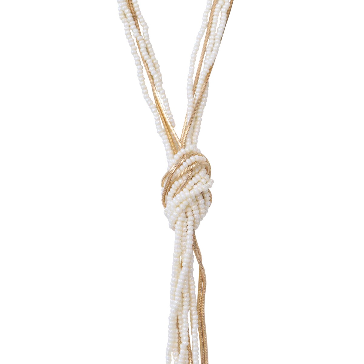 We're loving how Necklace Daphne looks - it’s got this unique knot design and some really elegant gold and white beads. And the knot can be adjusted, so customers can wear it long or short, depending on their outfit. It's one of those statement pieces that could be an easy sell - super flexible, fun for layering, and fits in with just about any look.