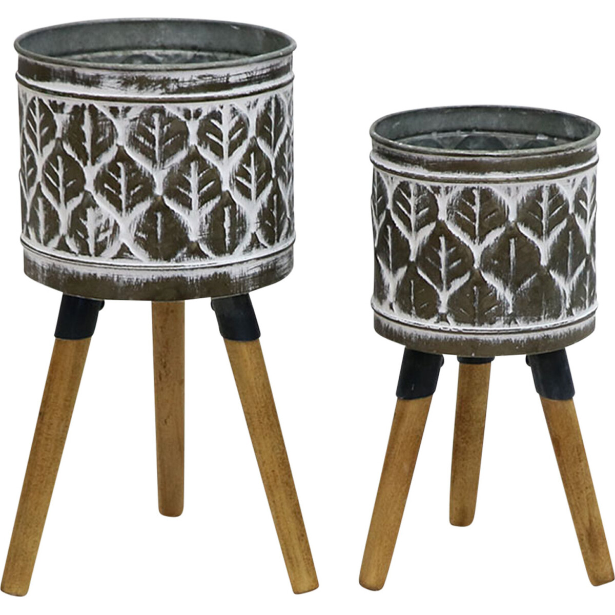 These Grey Wash Planters come as a set of two and look fantastic with their timber legs and embossed metal bodies. They’ve got a nice depth to the grey wash colour - kind of a vintage, natural thing going on. With one at 43 cm and the other at 36 cm high, they work well in pairs or as singles for smaller spaces, so there’s plenty of flexibility for how your customers might want to use them.